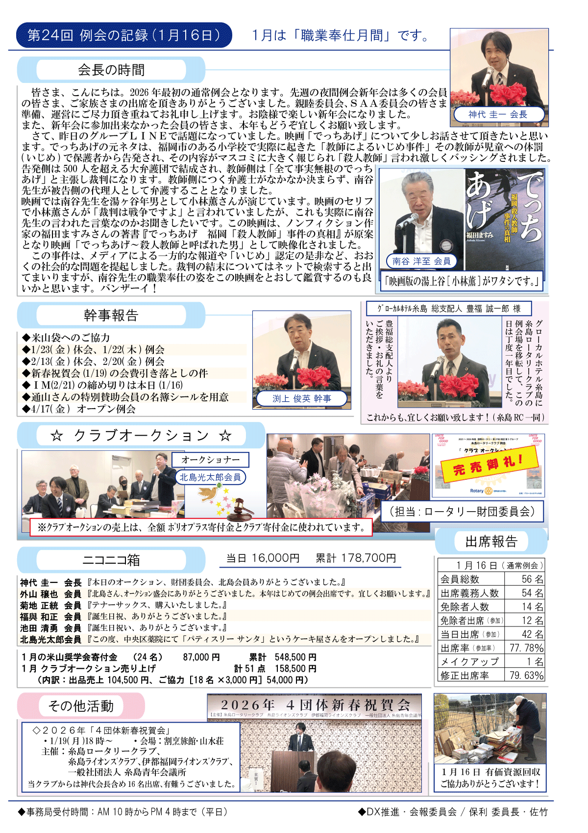 16日(金)週報(通常対面形式例会)