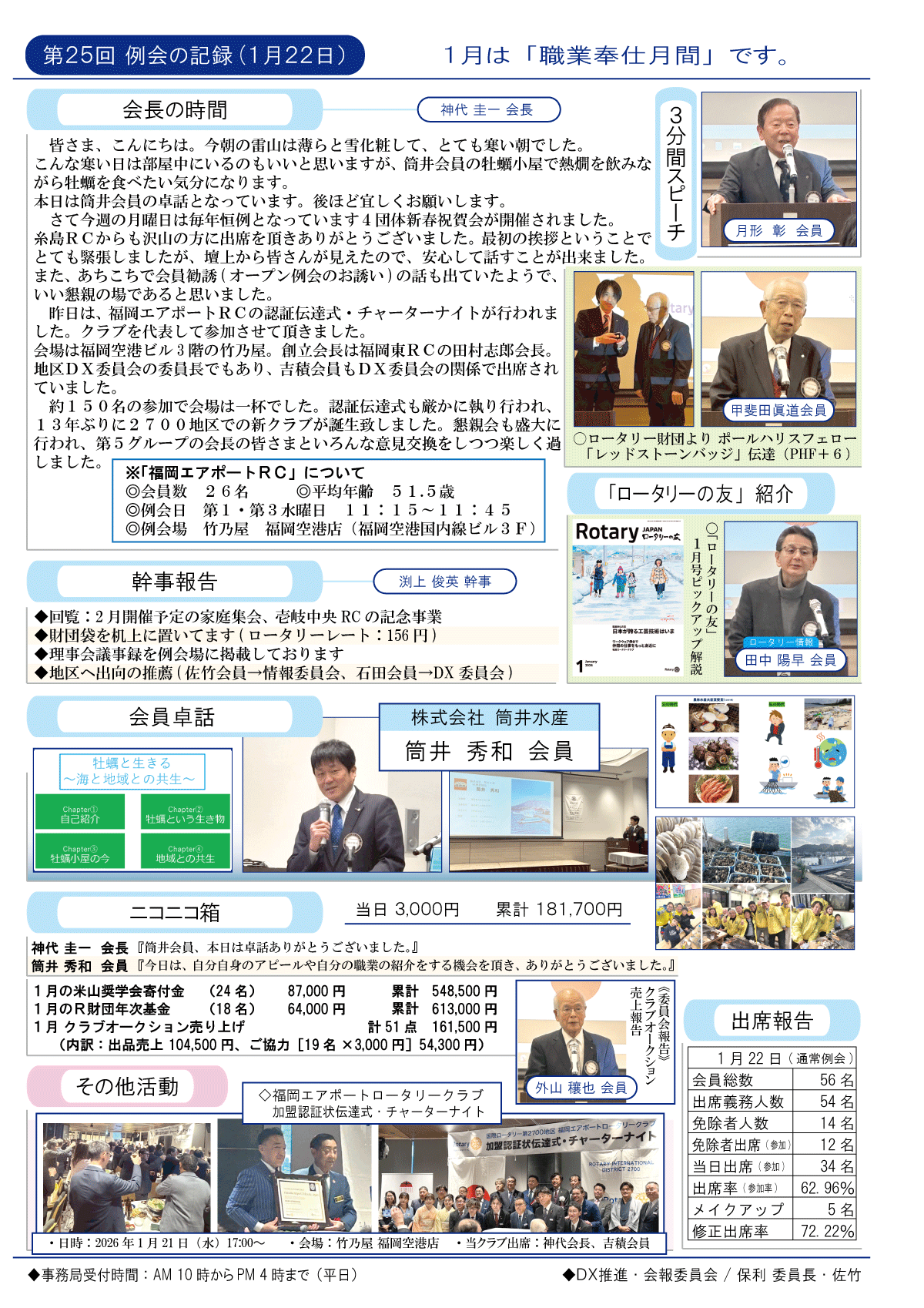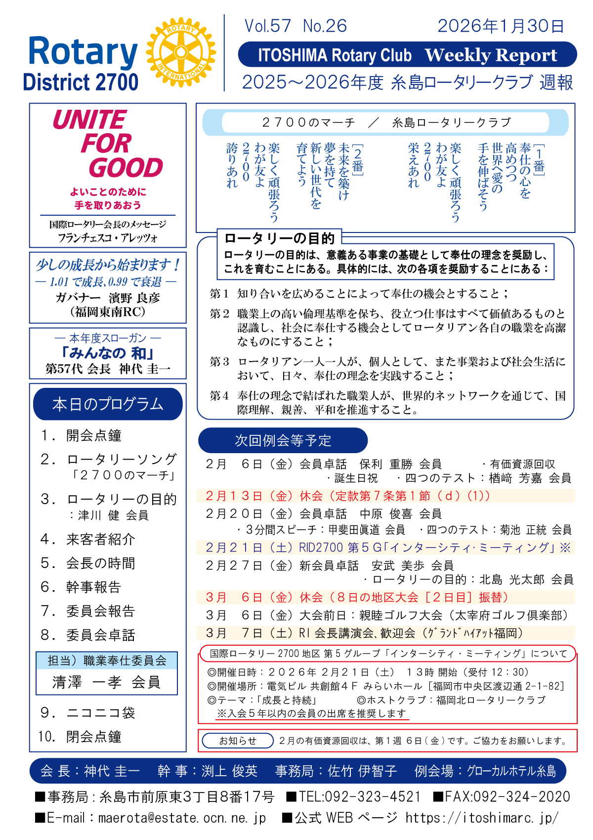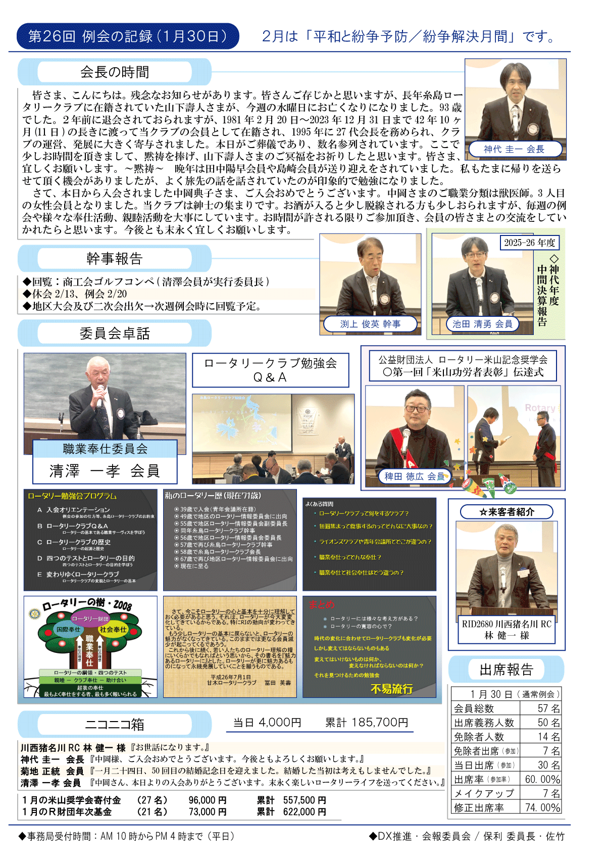 26日(金)週報(通常対面形式例会)