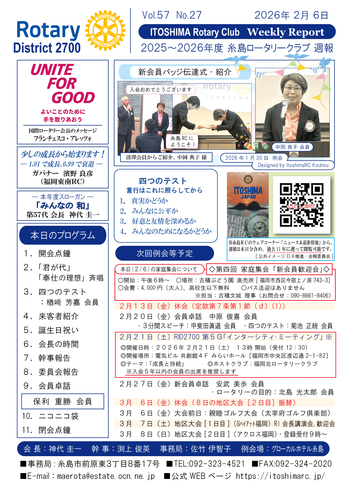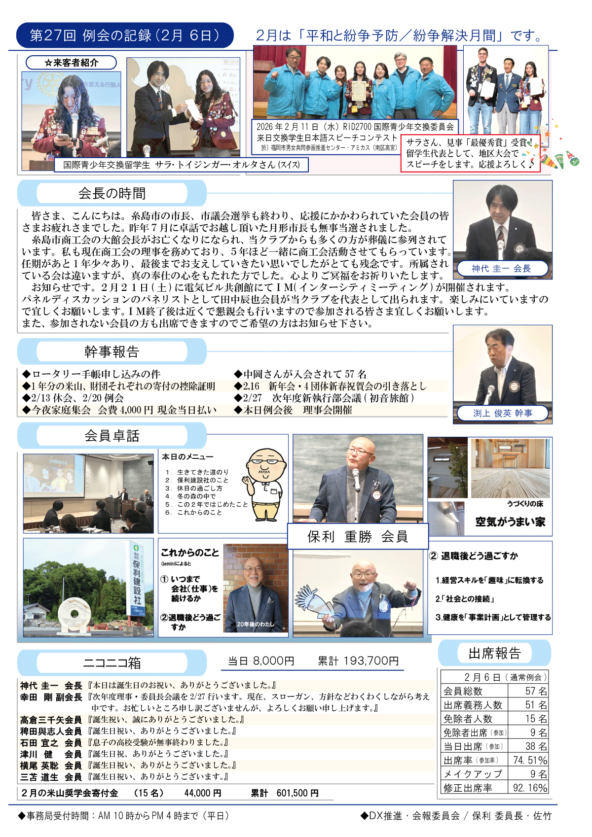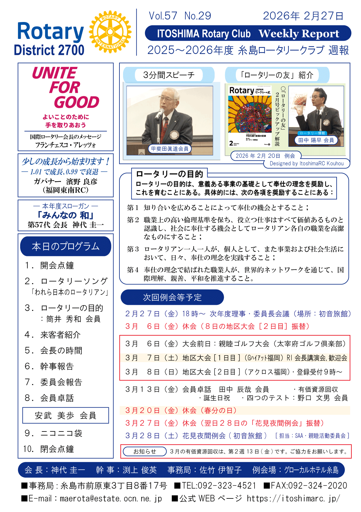 27日(金)週報(通常対面形式例会)