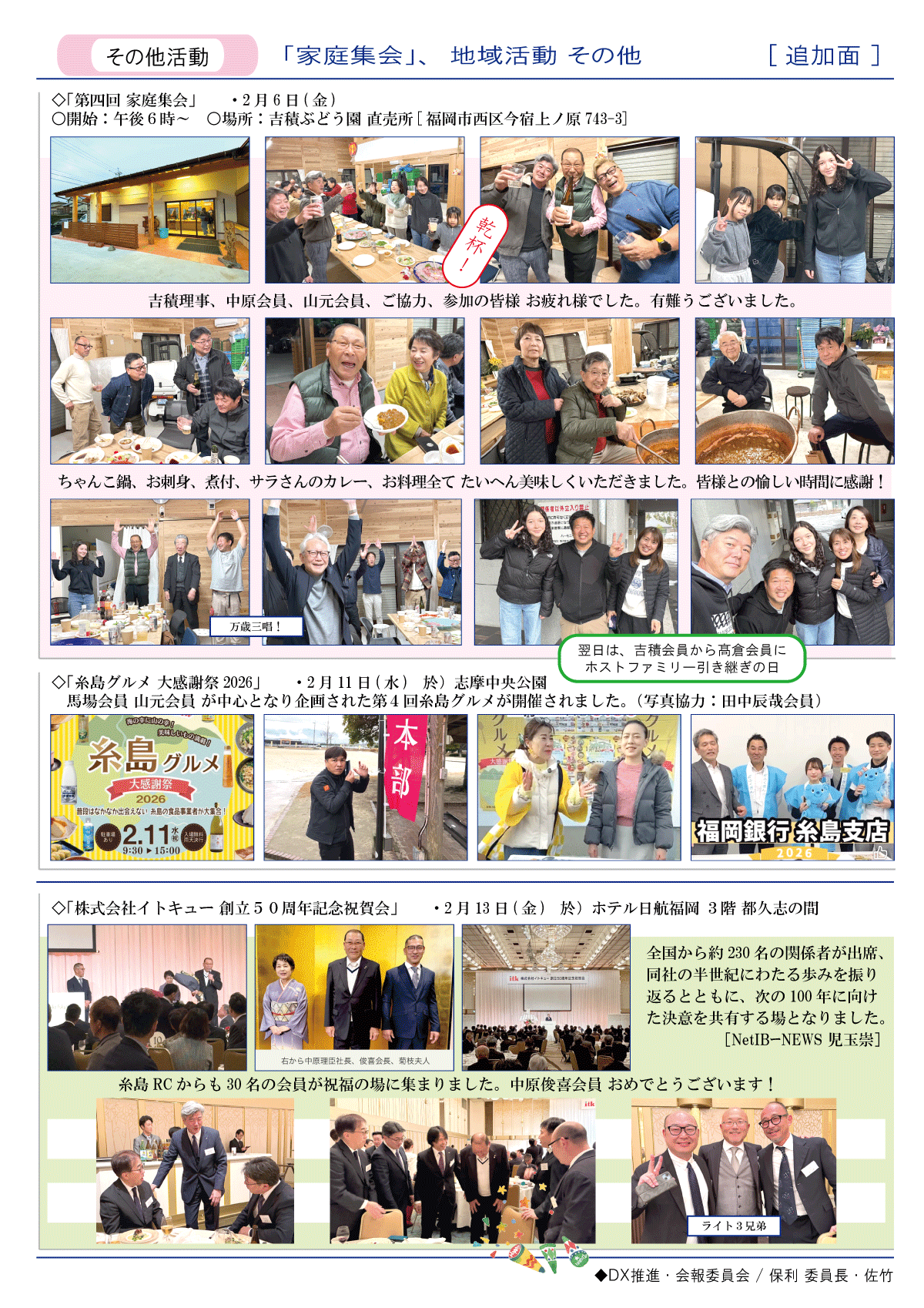 8日(土)週報・糸島RC創立50周年記念式典・祝賀会