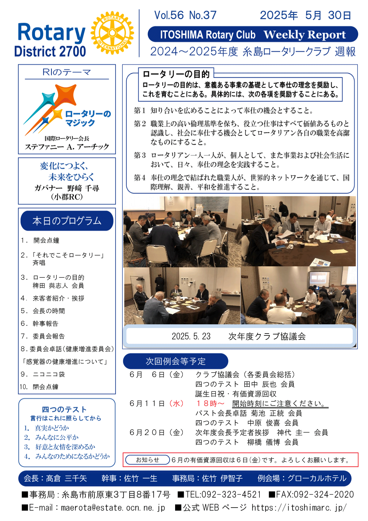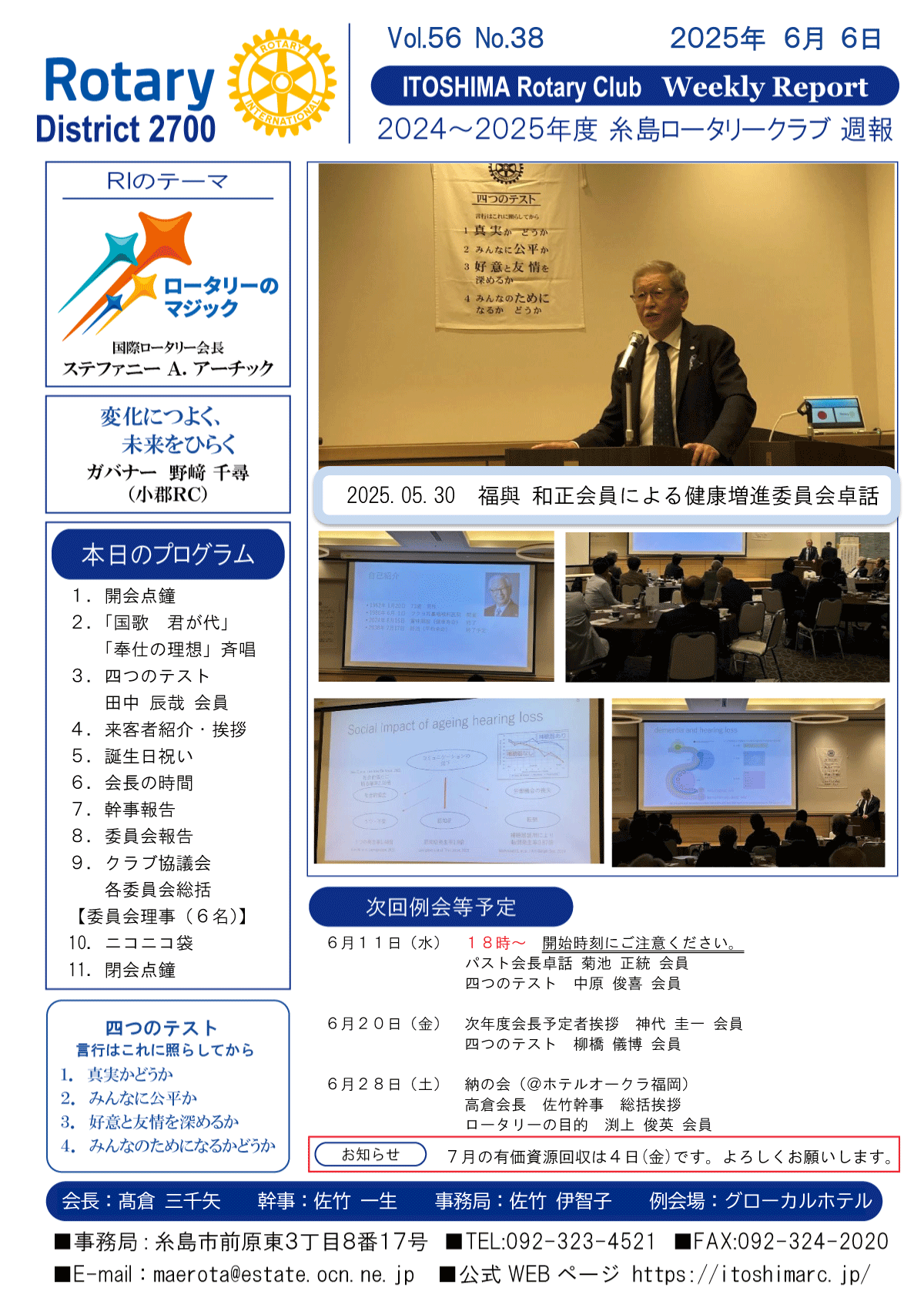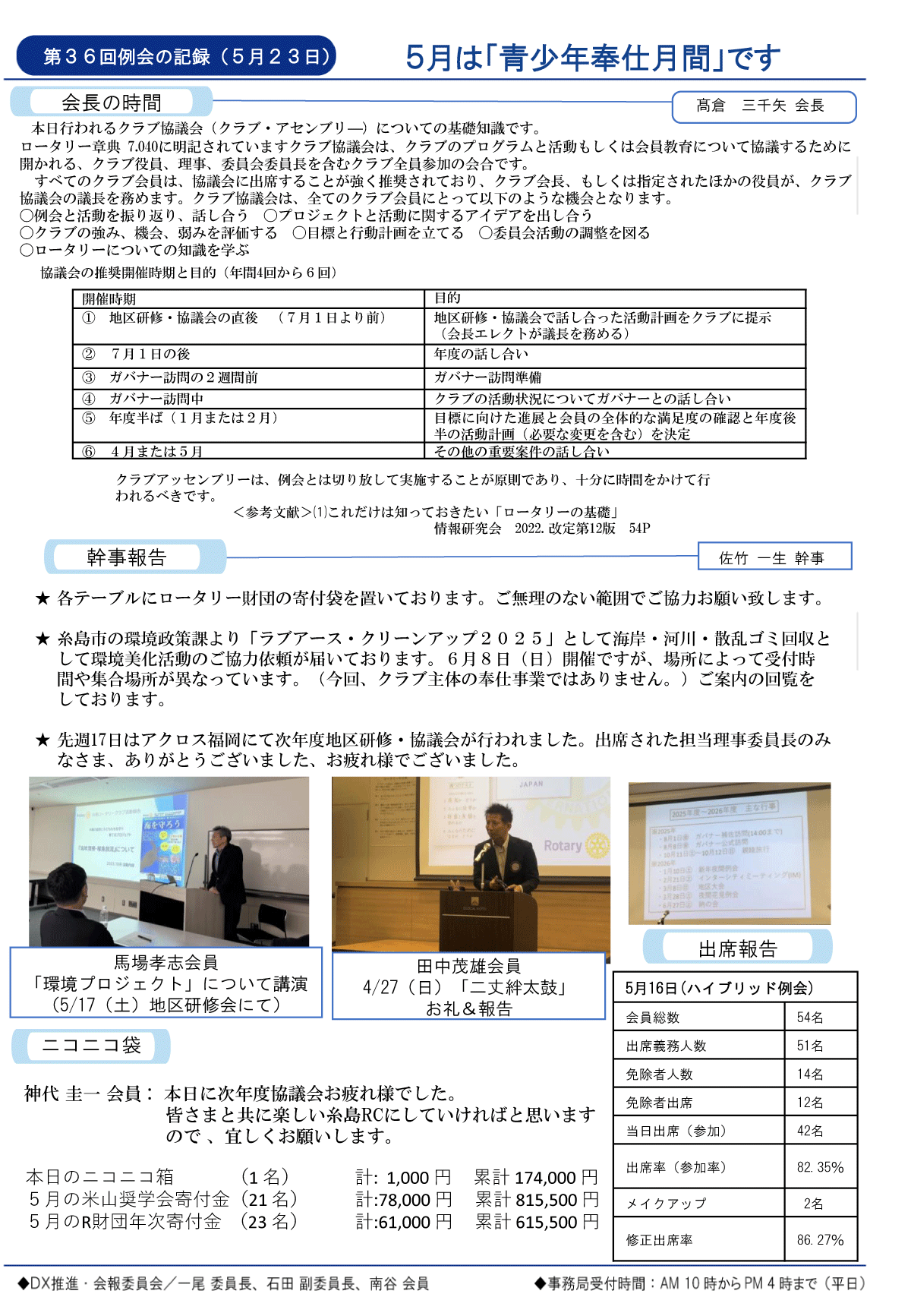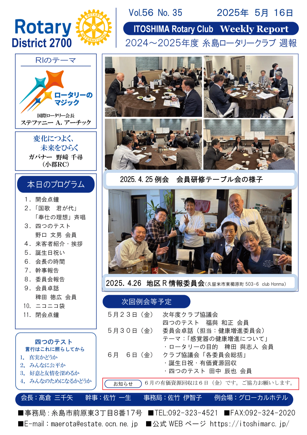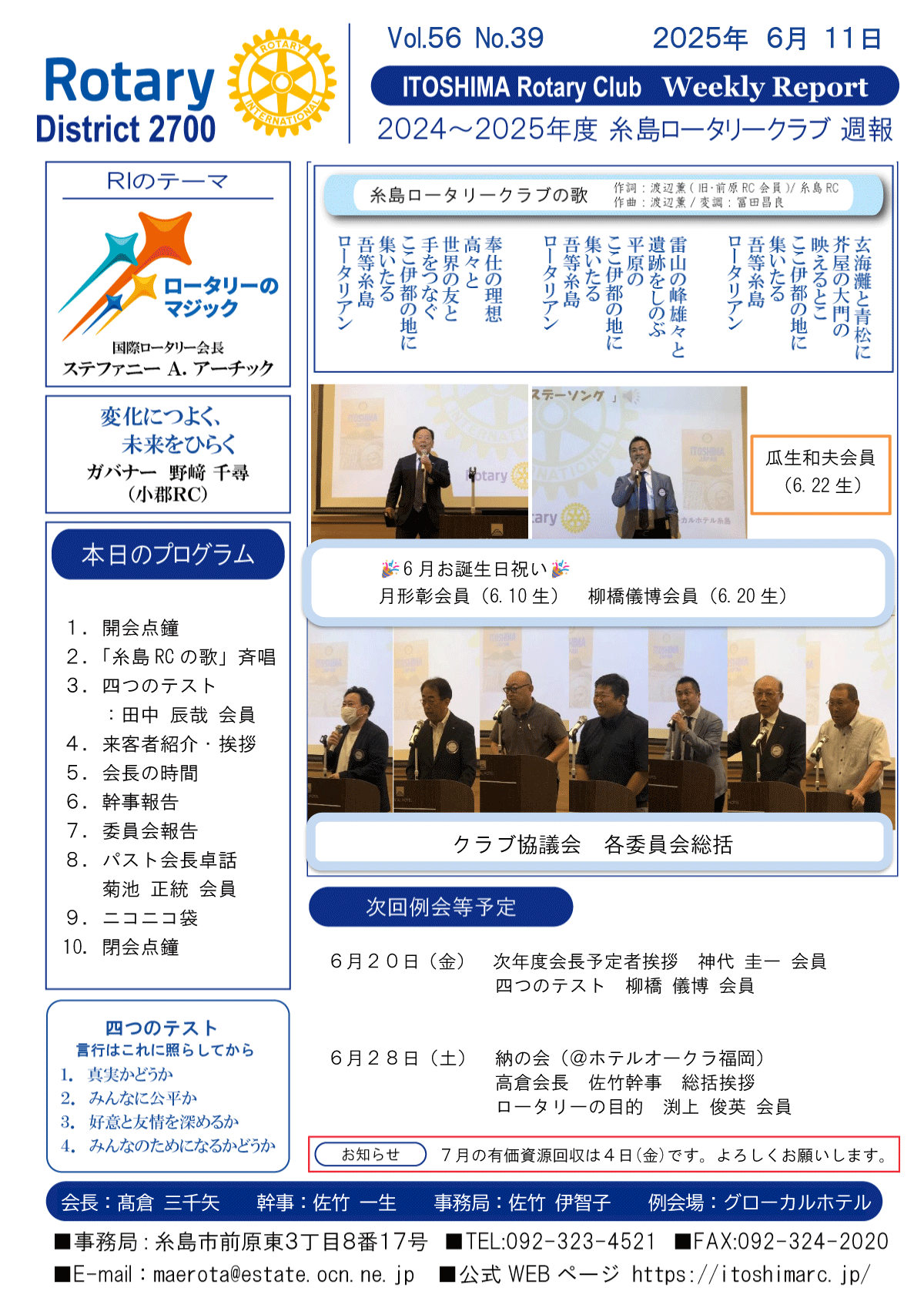 25日(金)週報(通常対面形式例会)