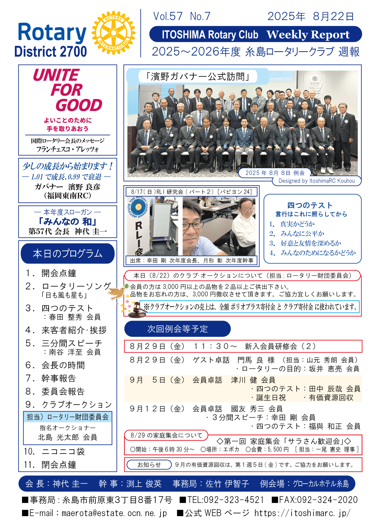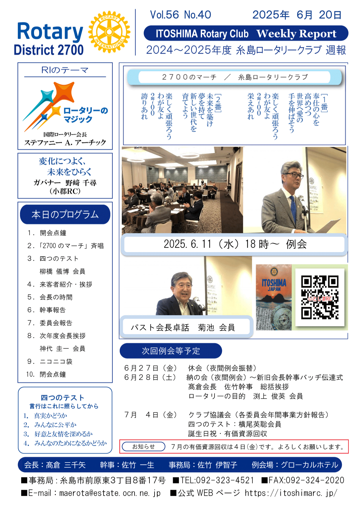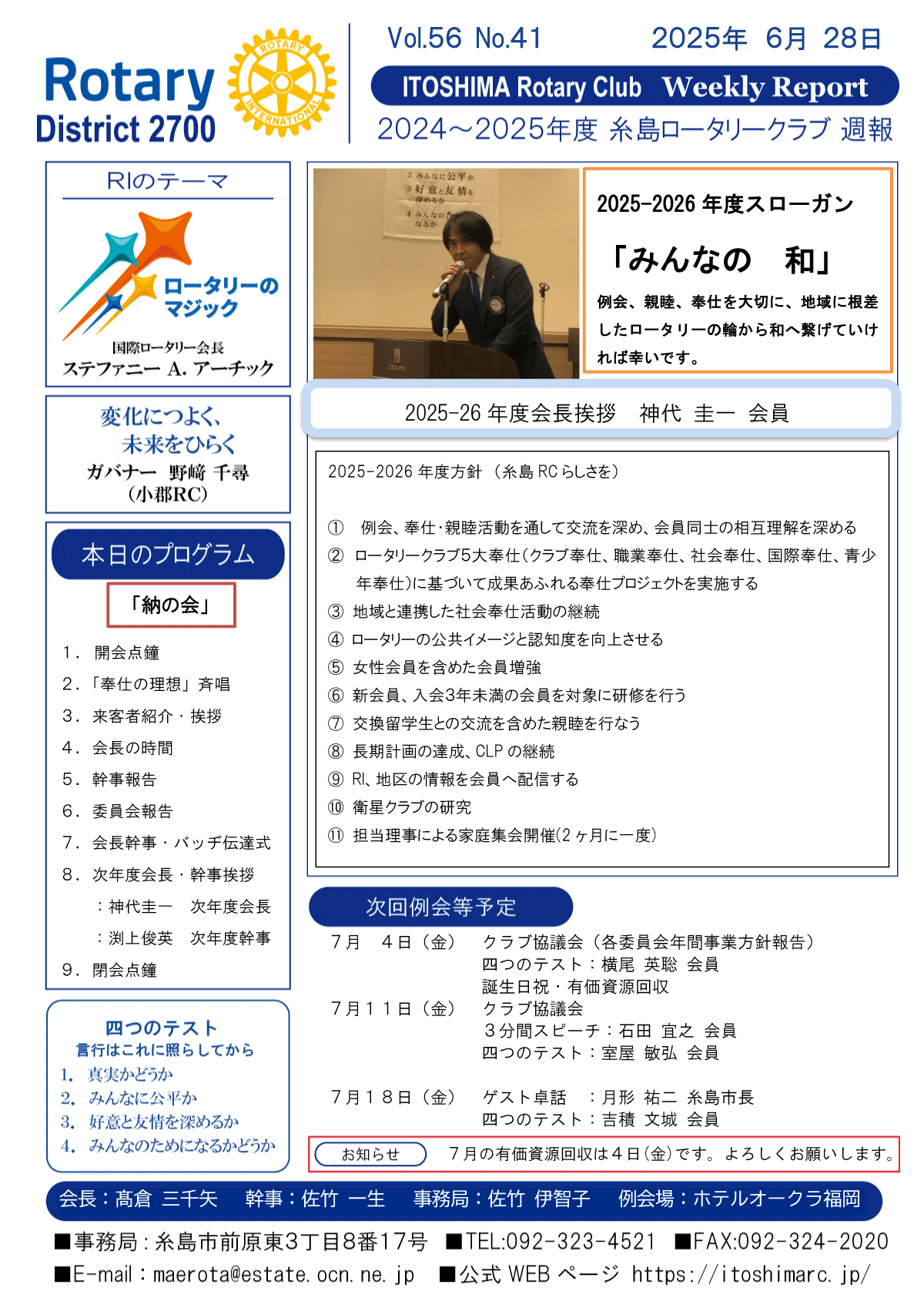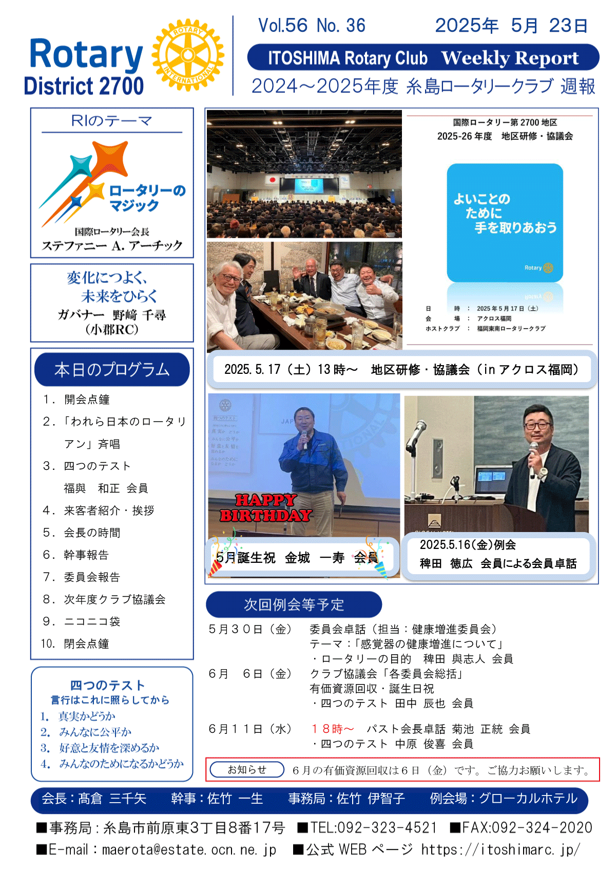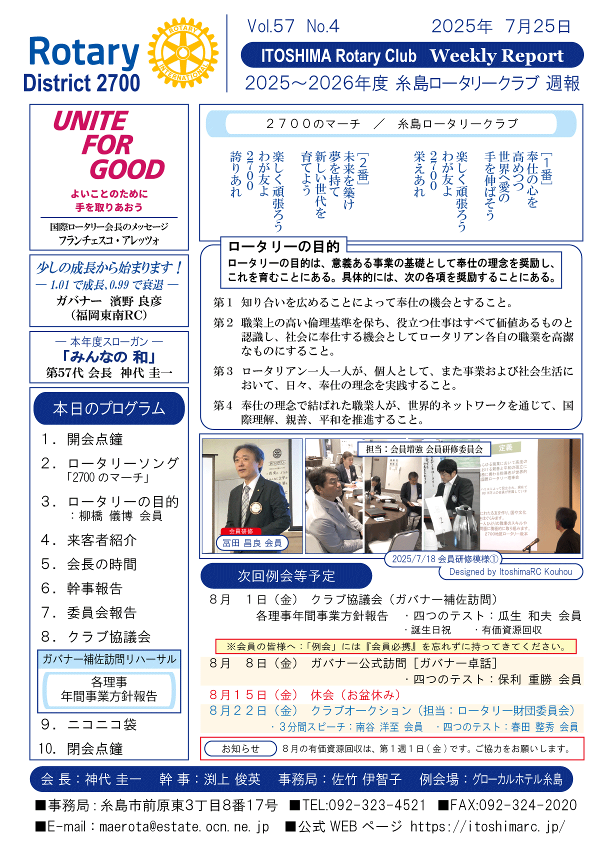 25日(金)週報(通常対面形式例会)