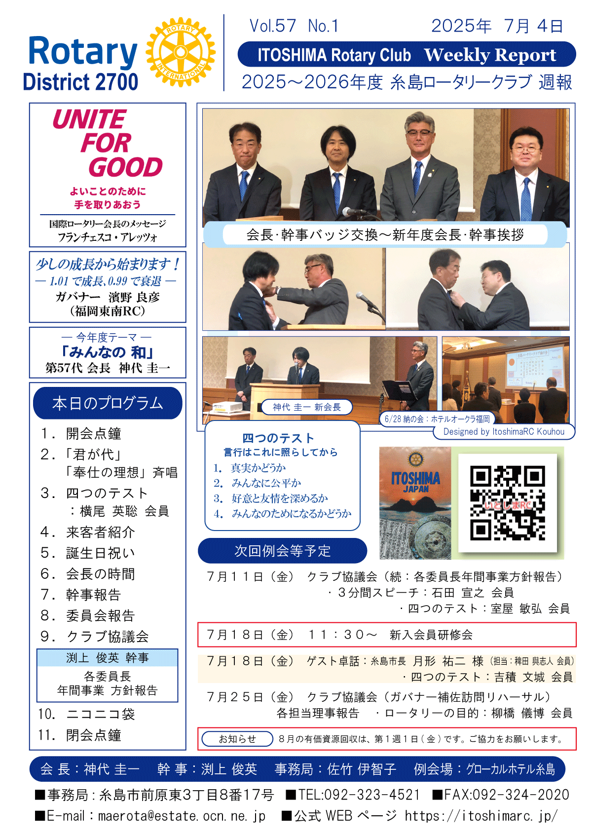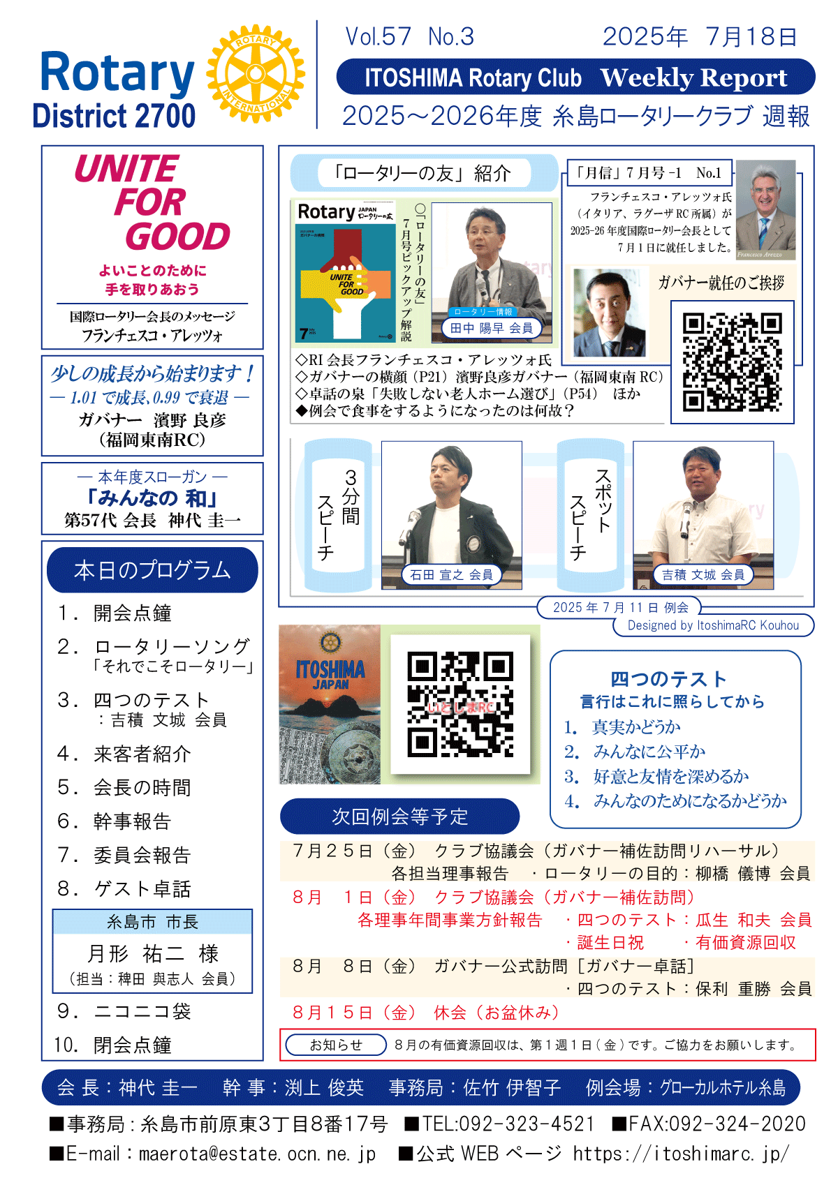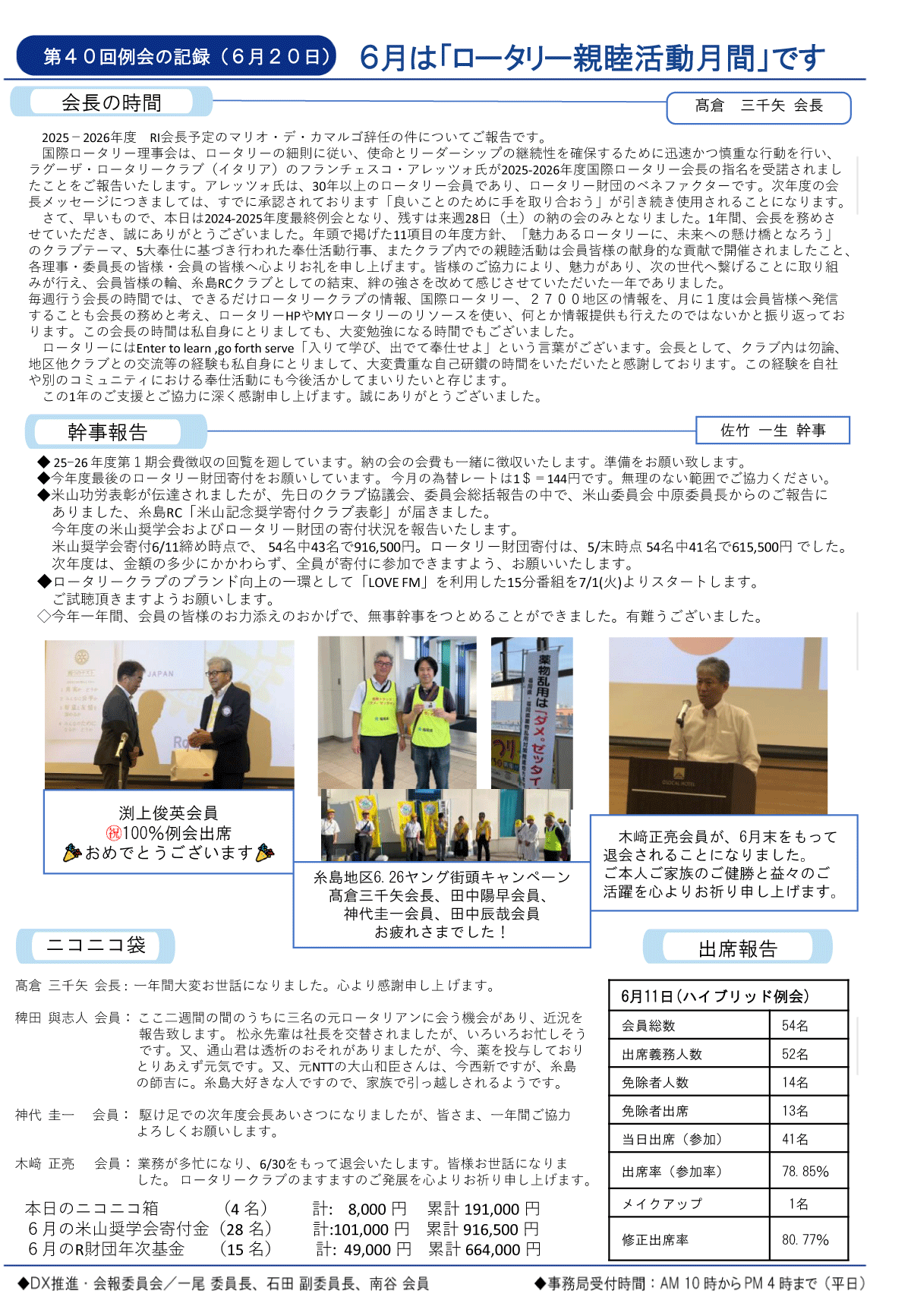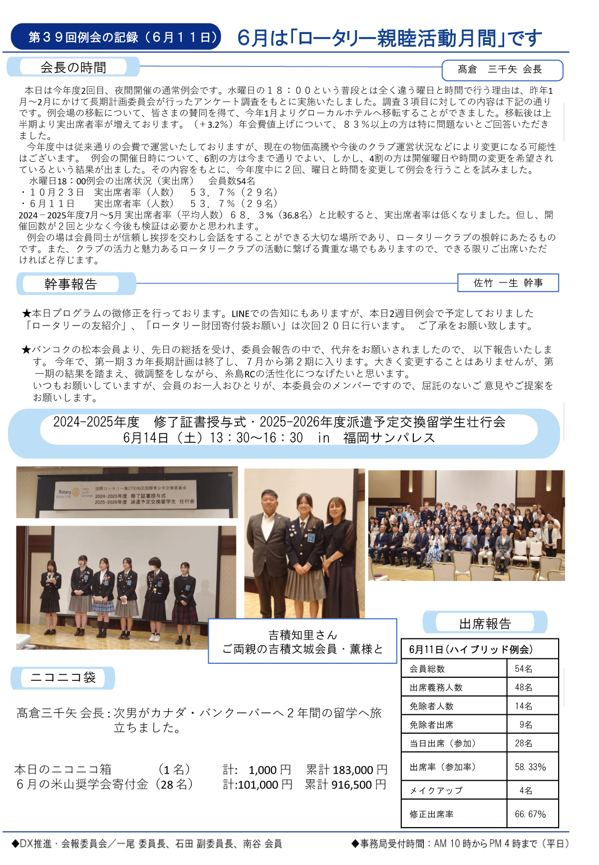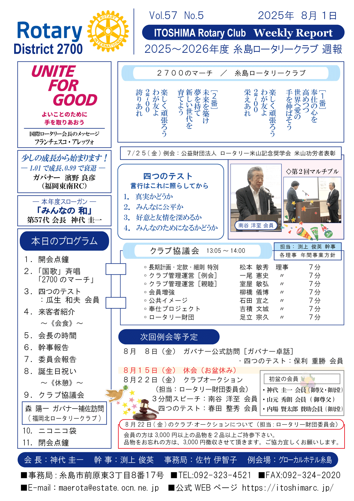 25日(金)週報(通常対面形式例会)