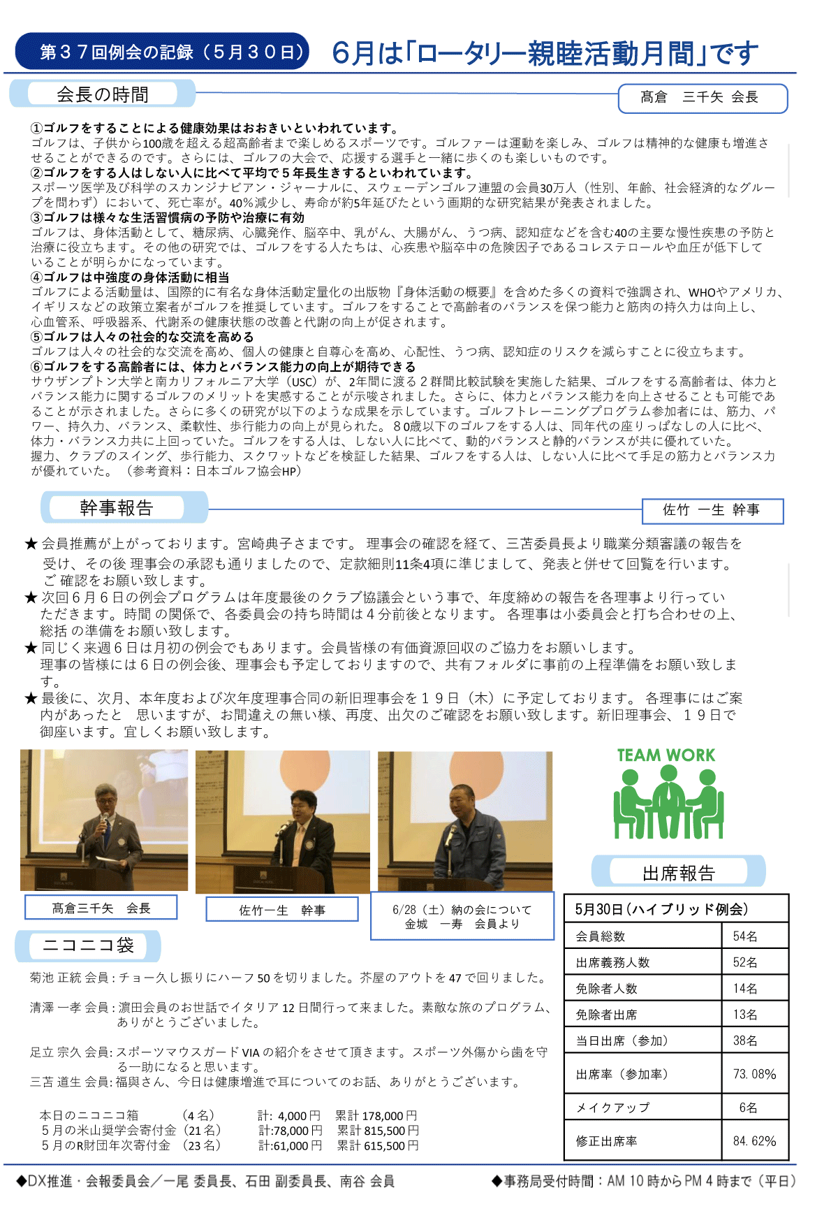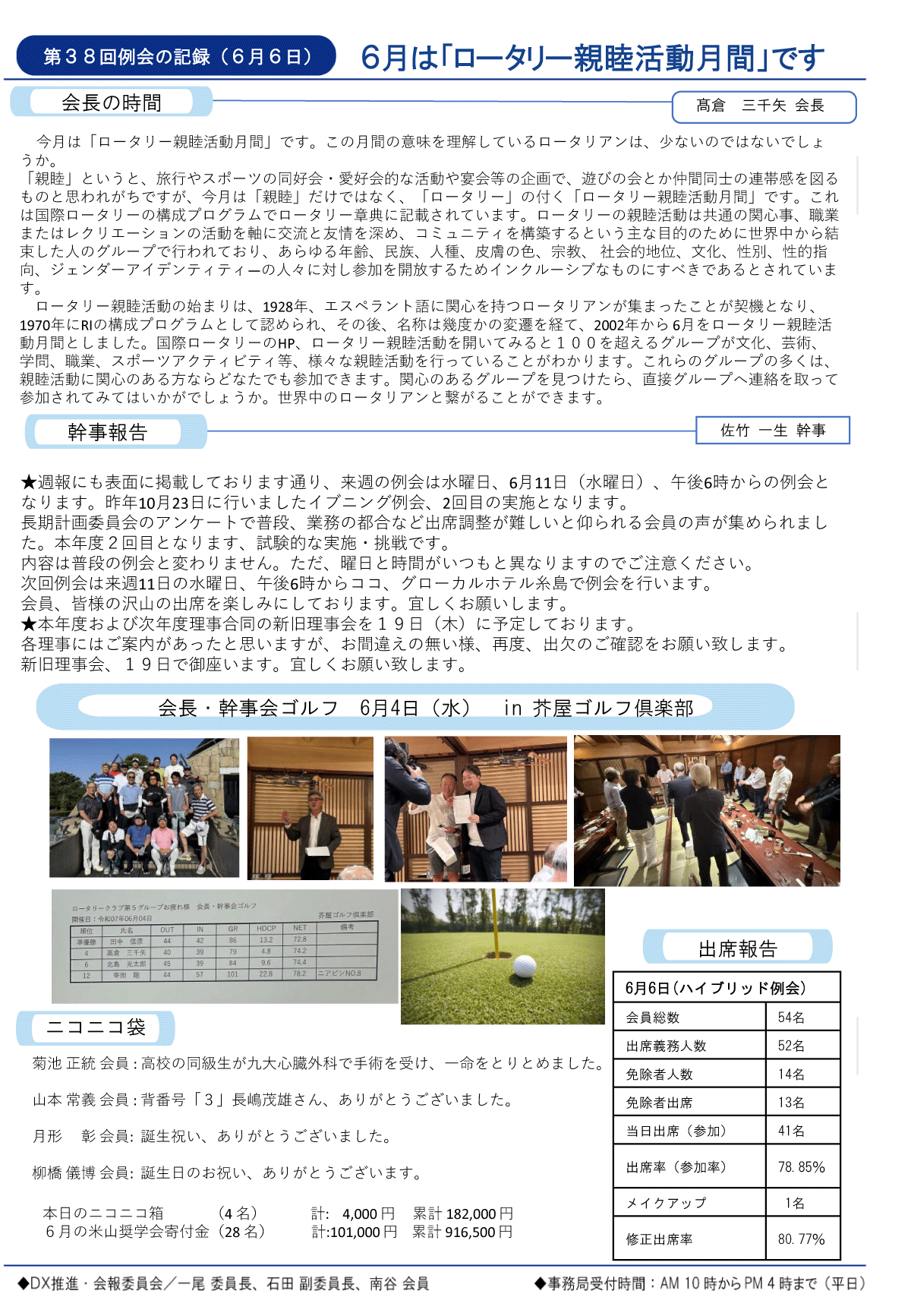 10日(土)週報(夜間例会・グラウンドゴルフ)