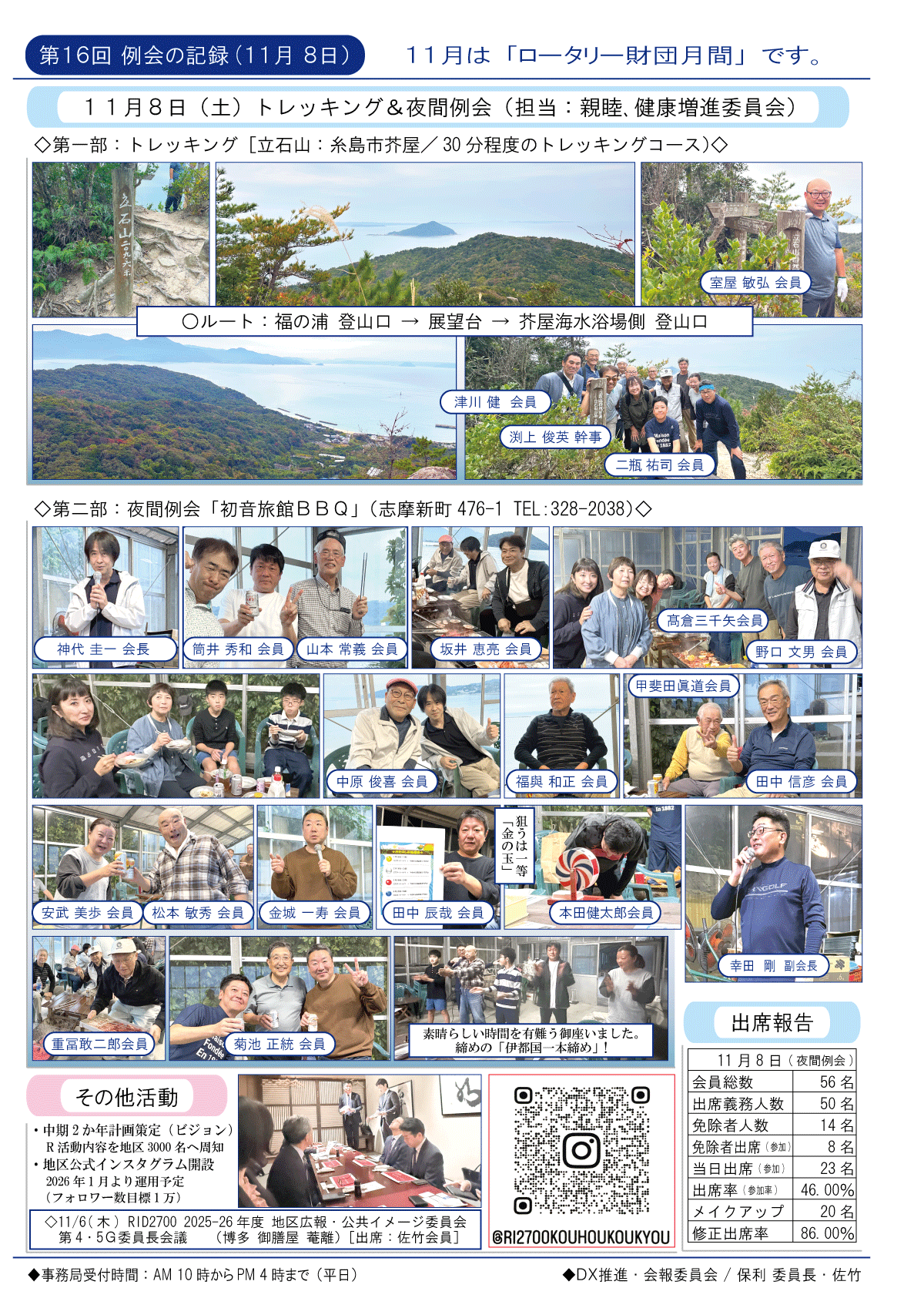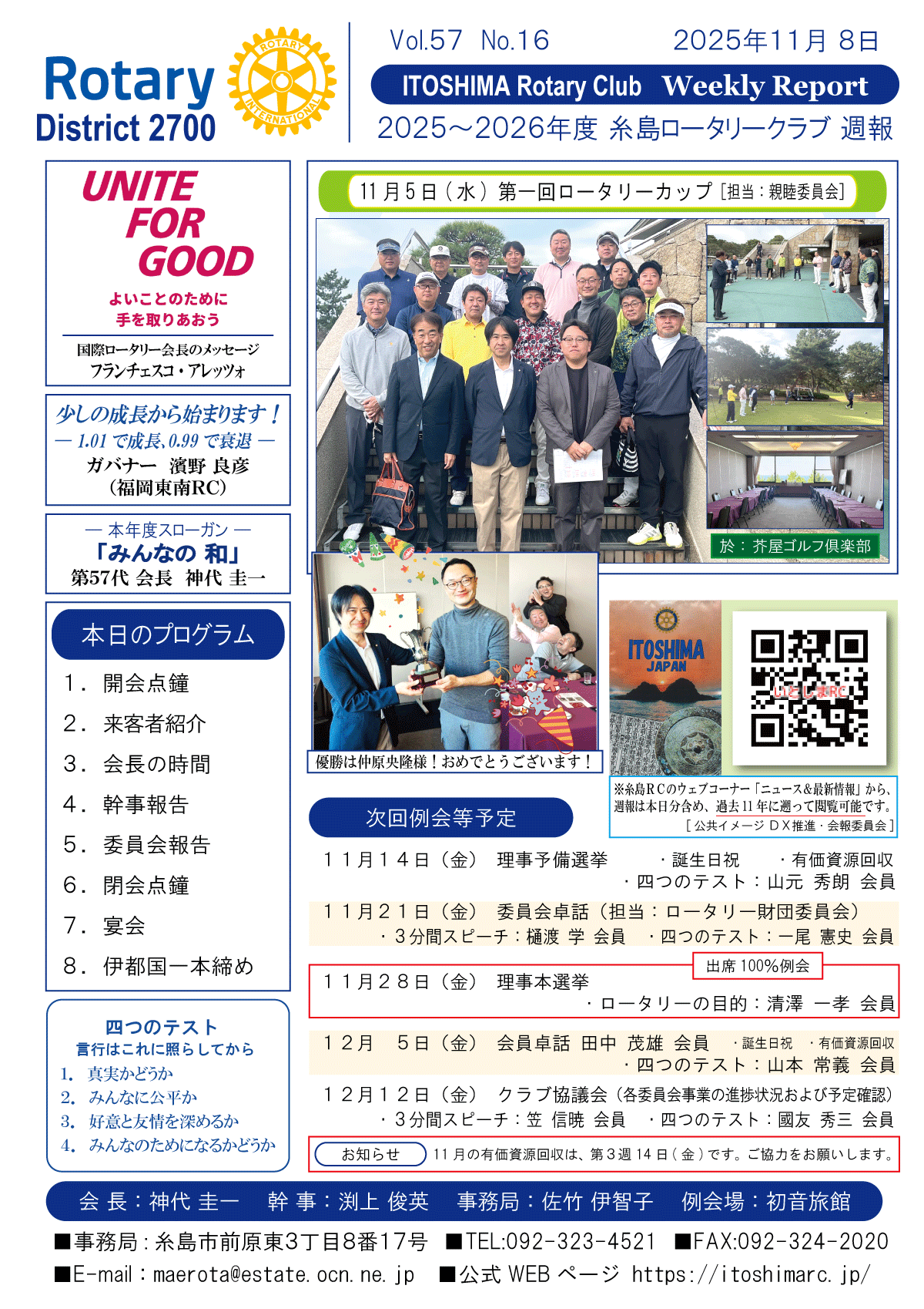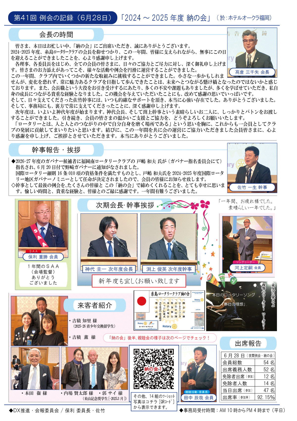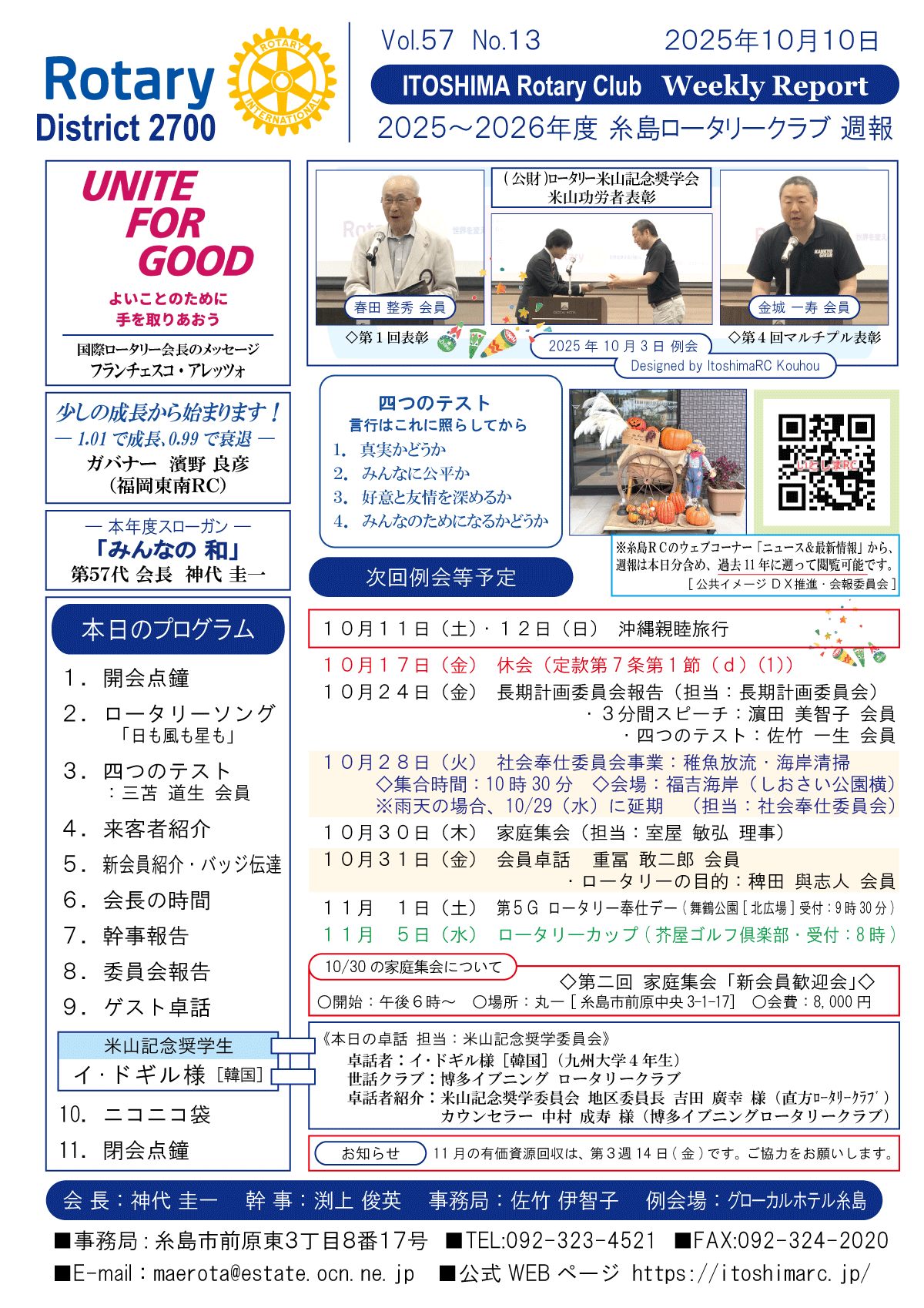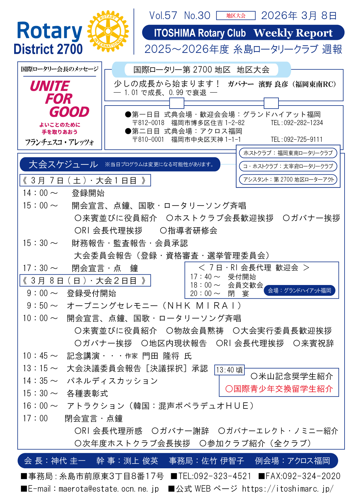 8日(土)週報・糸島RC創立50周年記念式典・祝賀会
