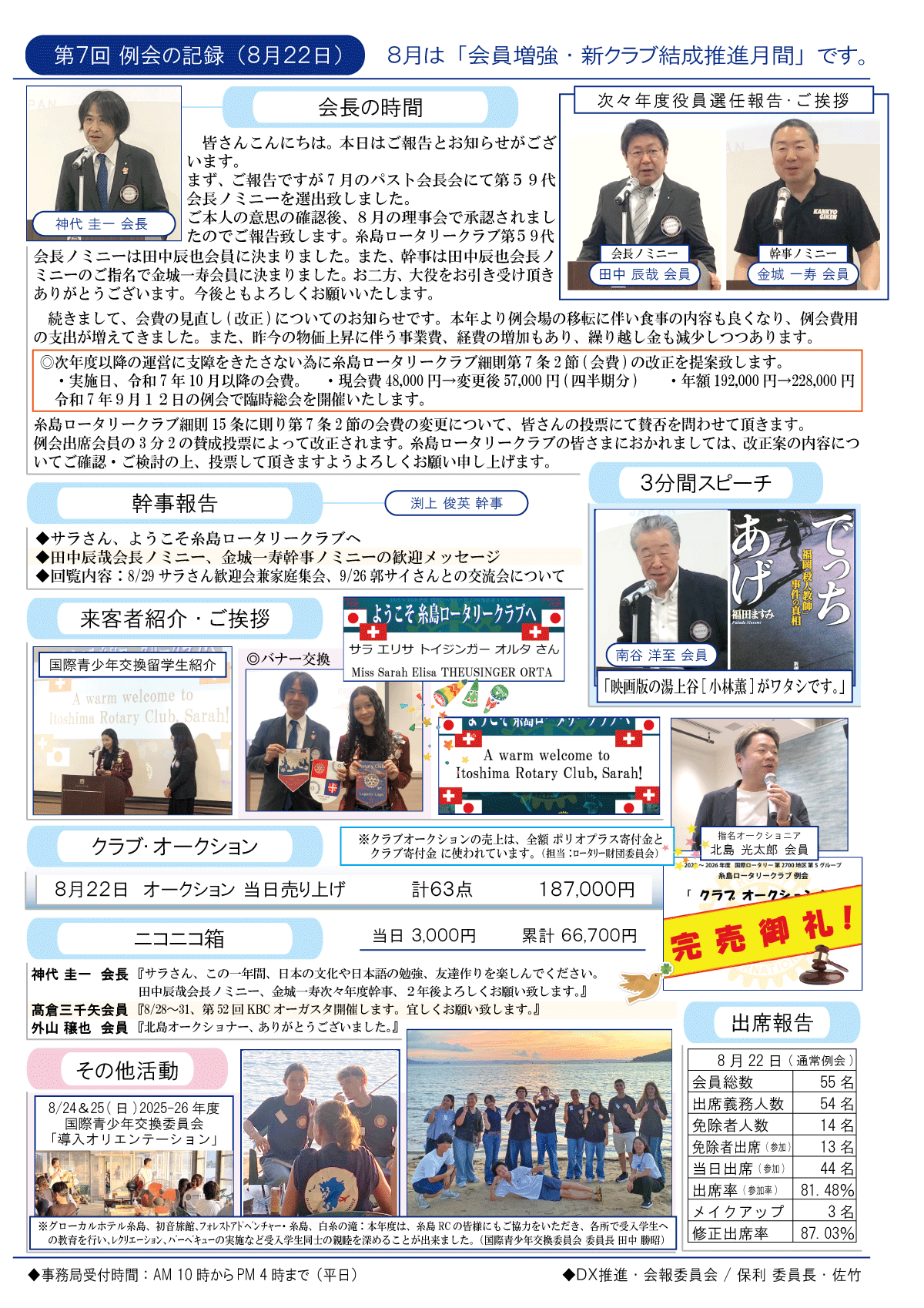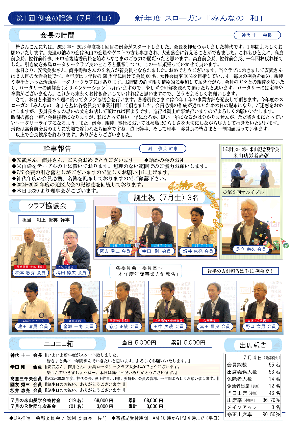 7日(金)週報(通常対面形式例会)