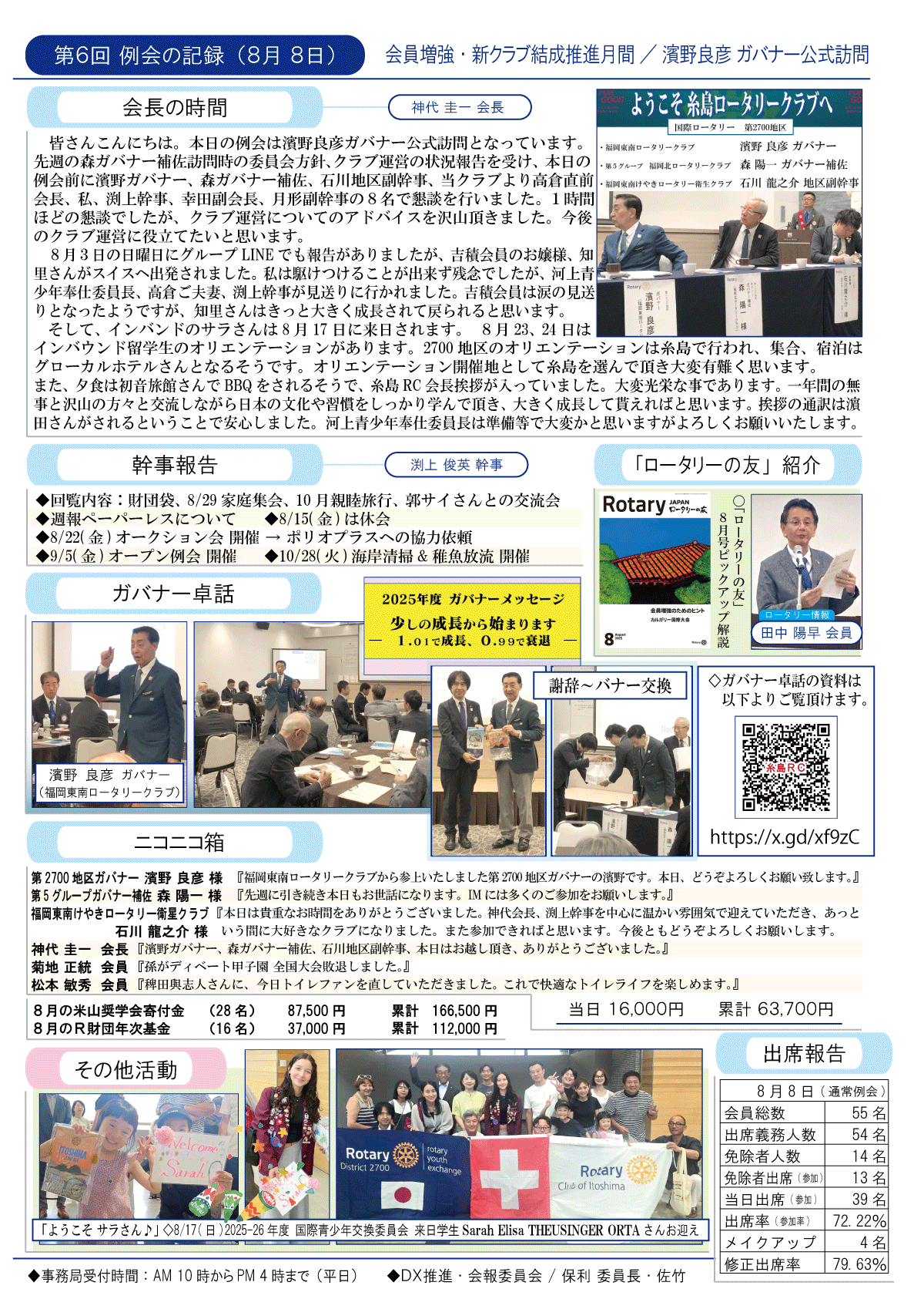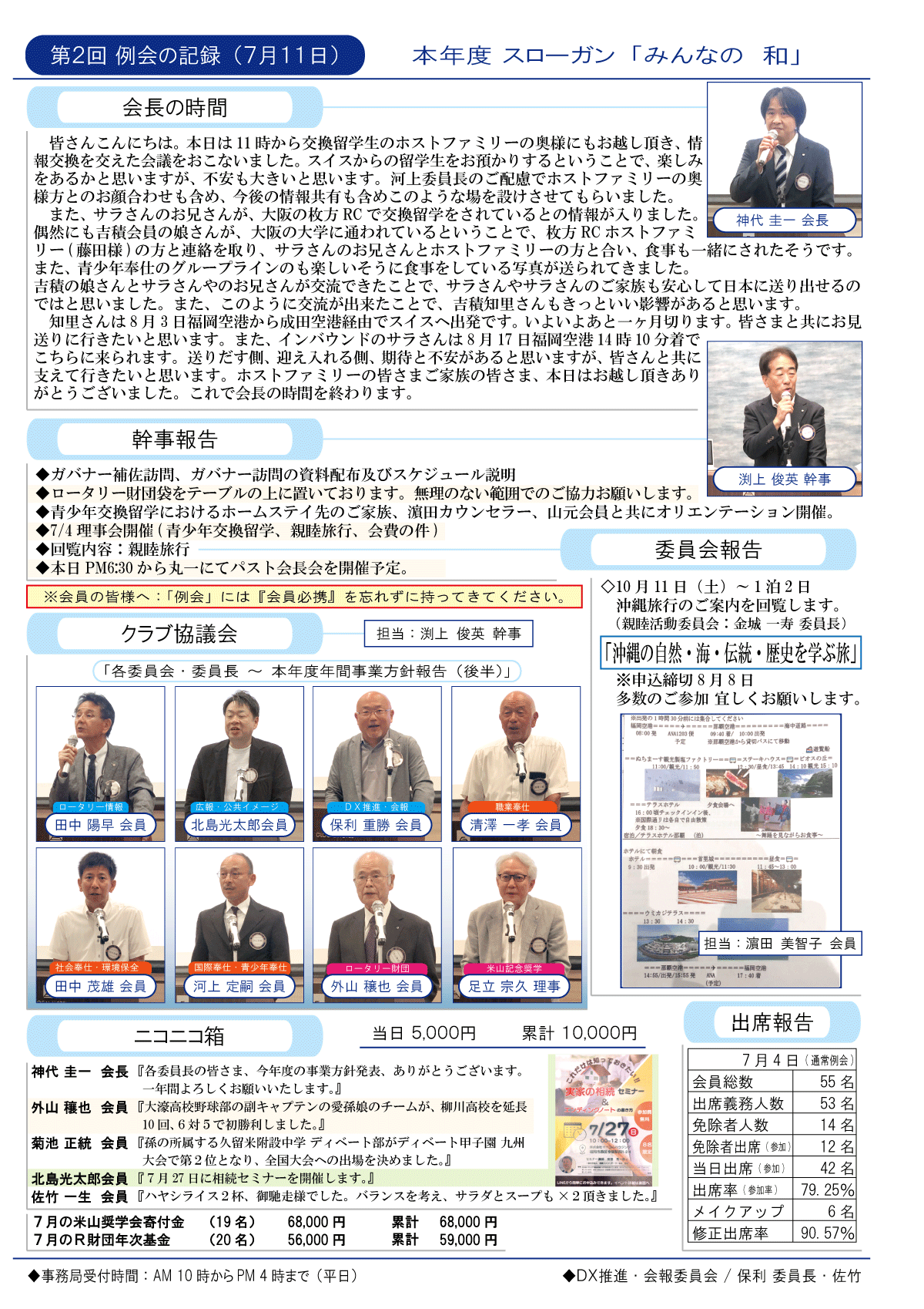2日(金)週報(オンラインクラブ例会)