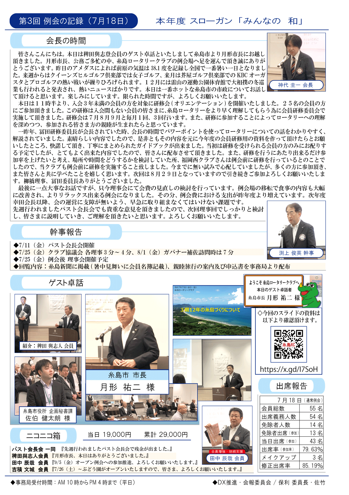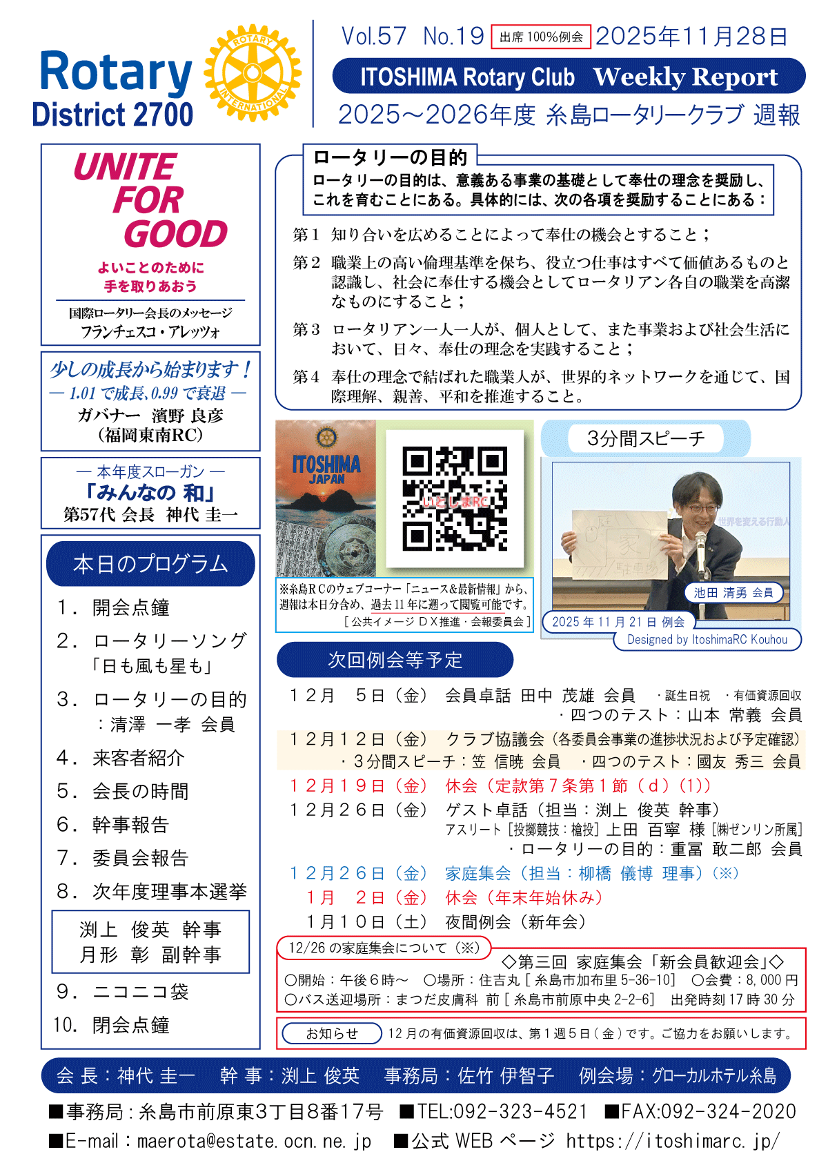 19日(金)週報(通常対面形式例会)