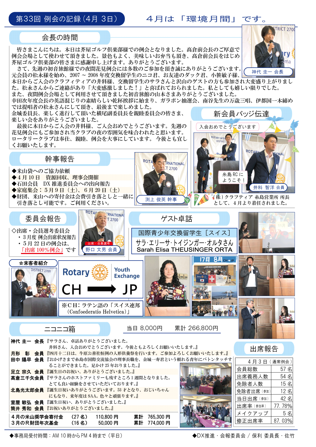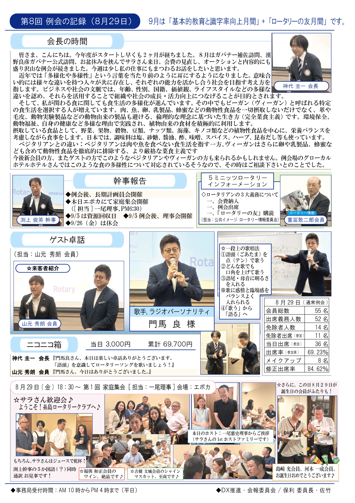 3日(金)週報(通常対面形式例会)