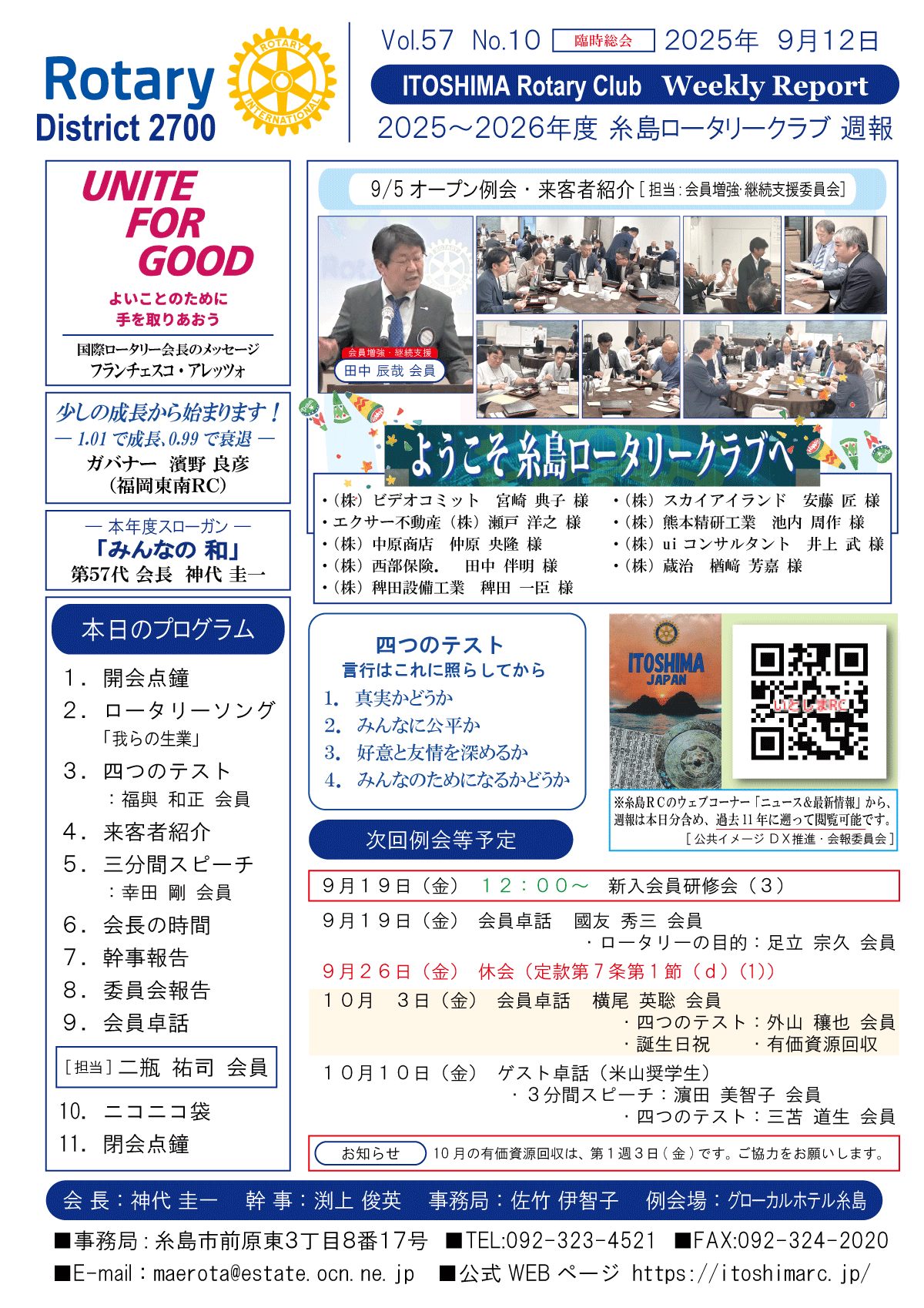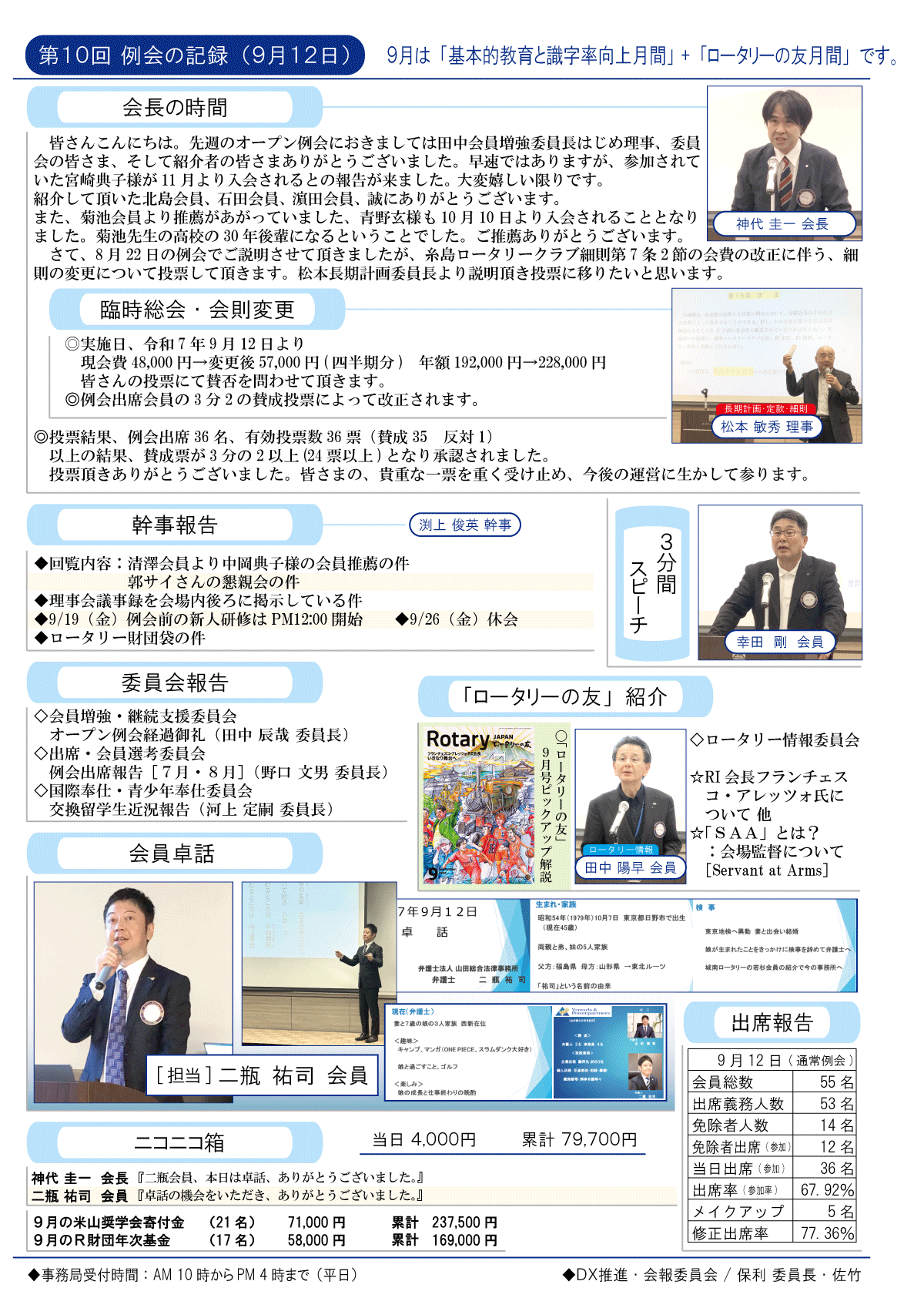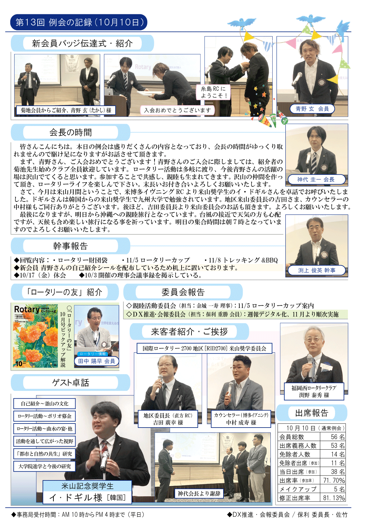 10日(金)週報(通常対面形式例会)