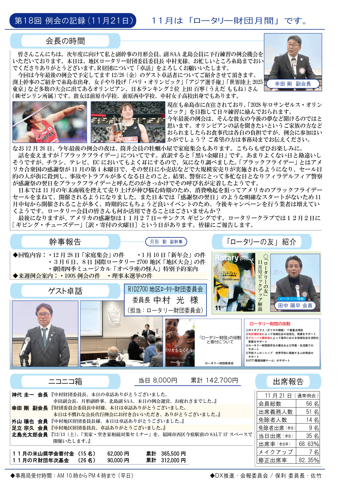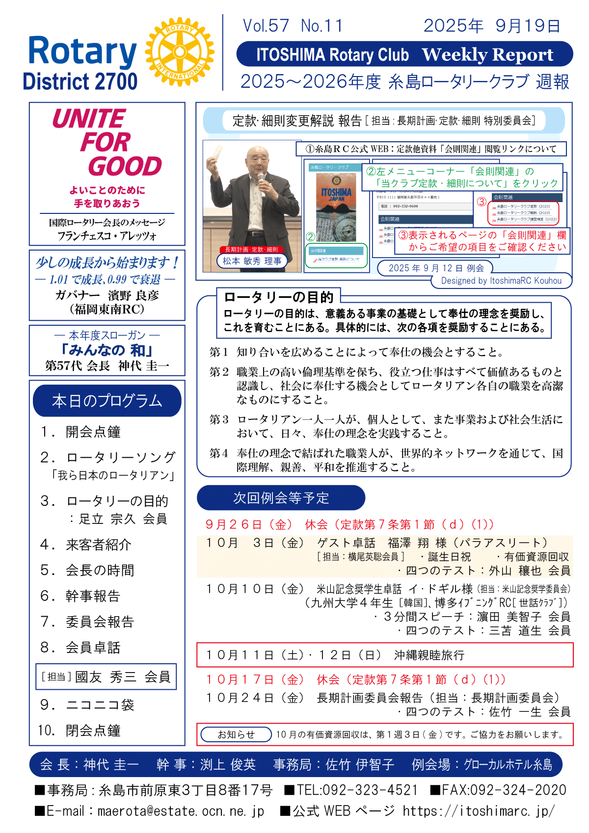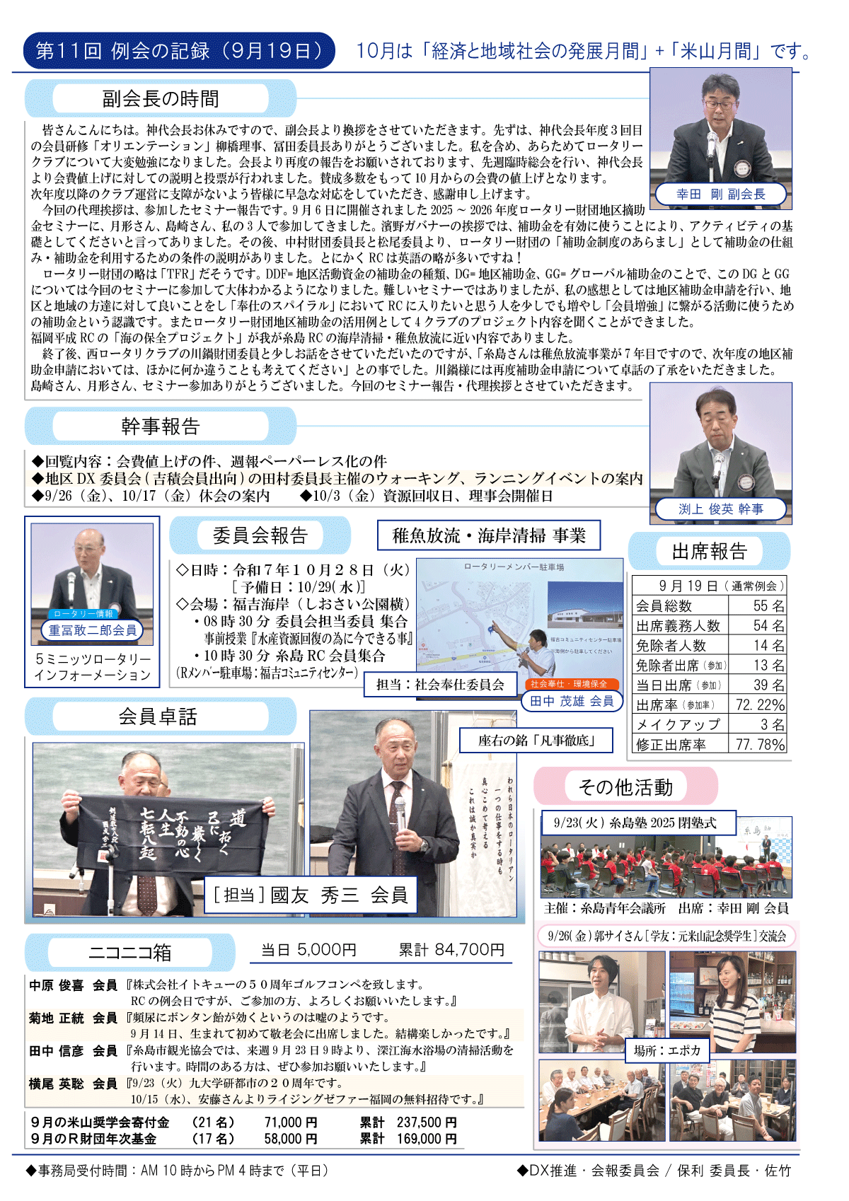 11日(金)週報(通常対面形式例会)
