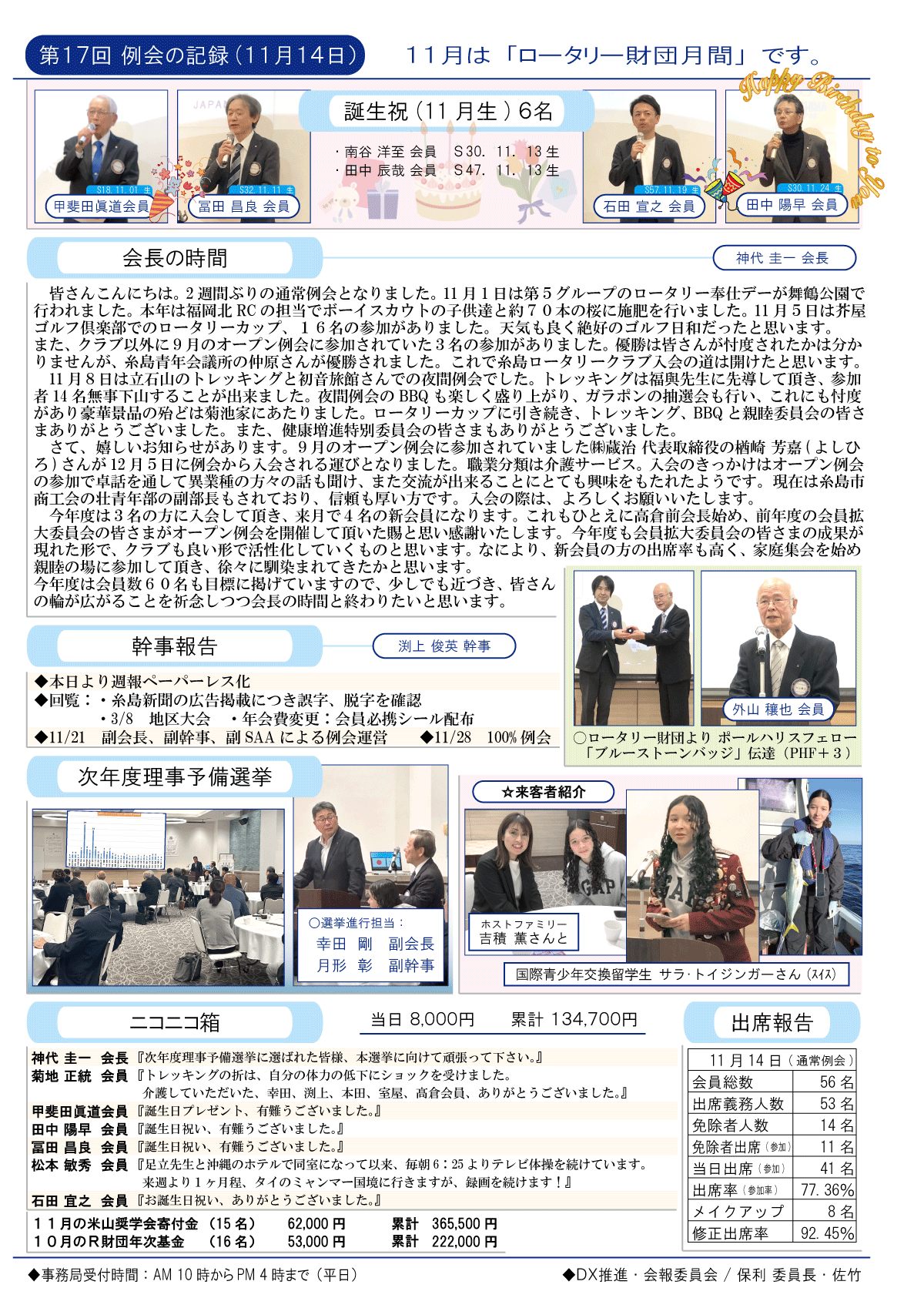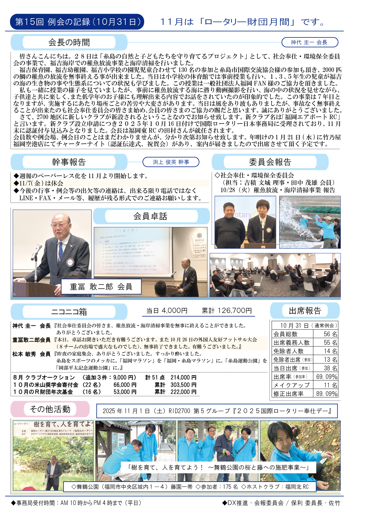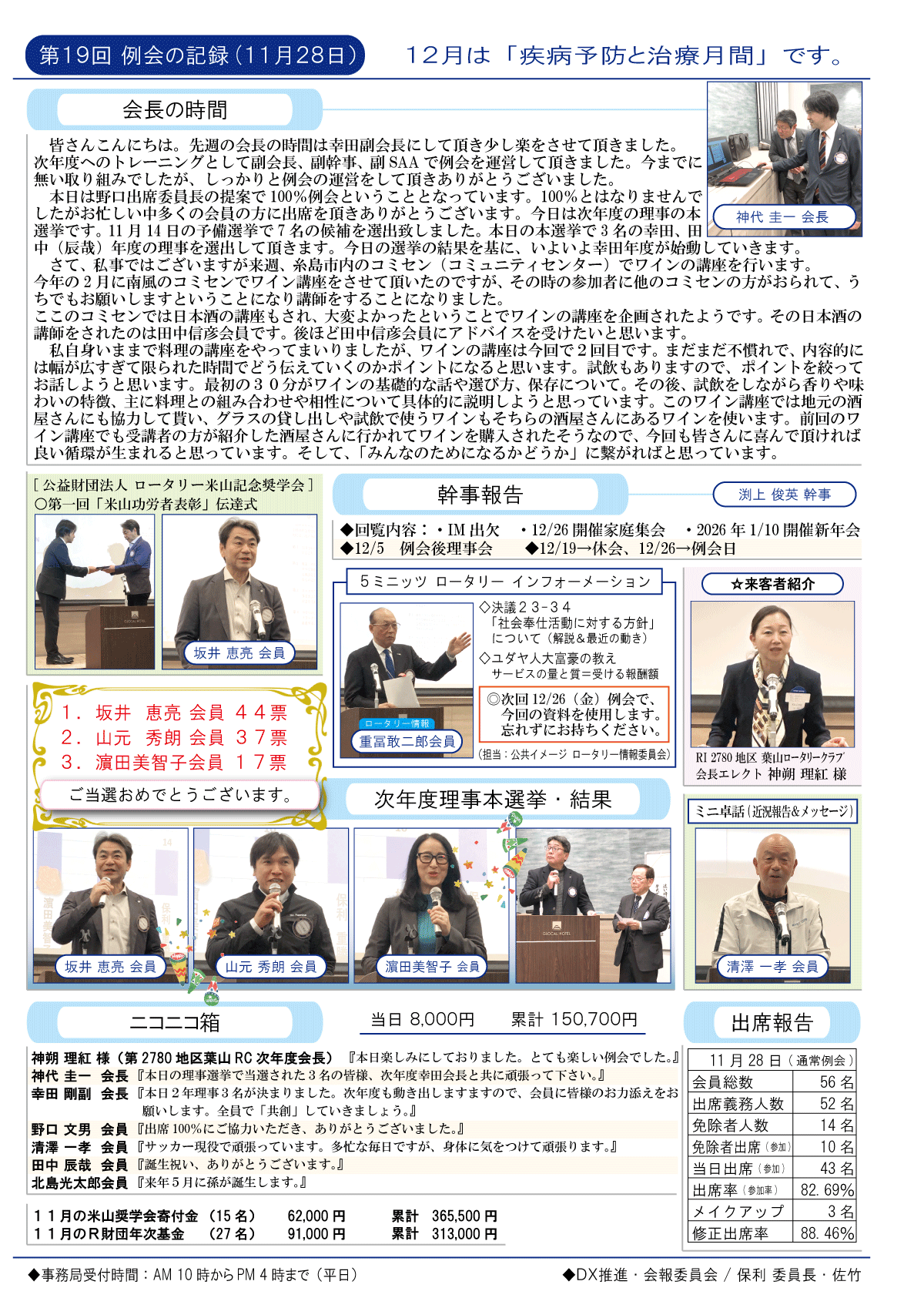 11日(金)週報(通常対面形式例会)