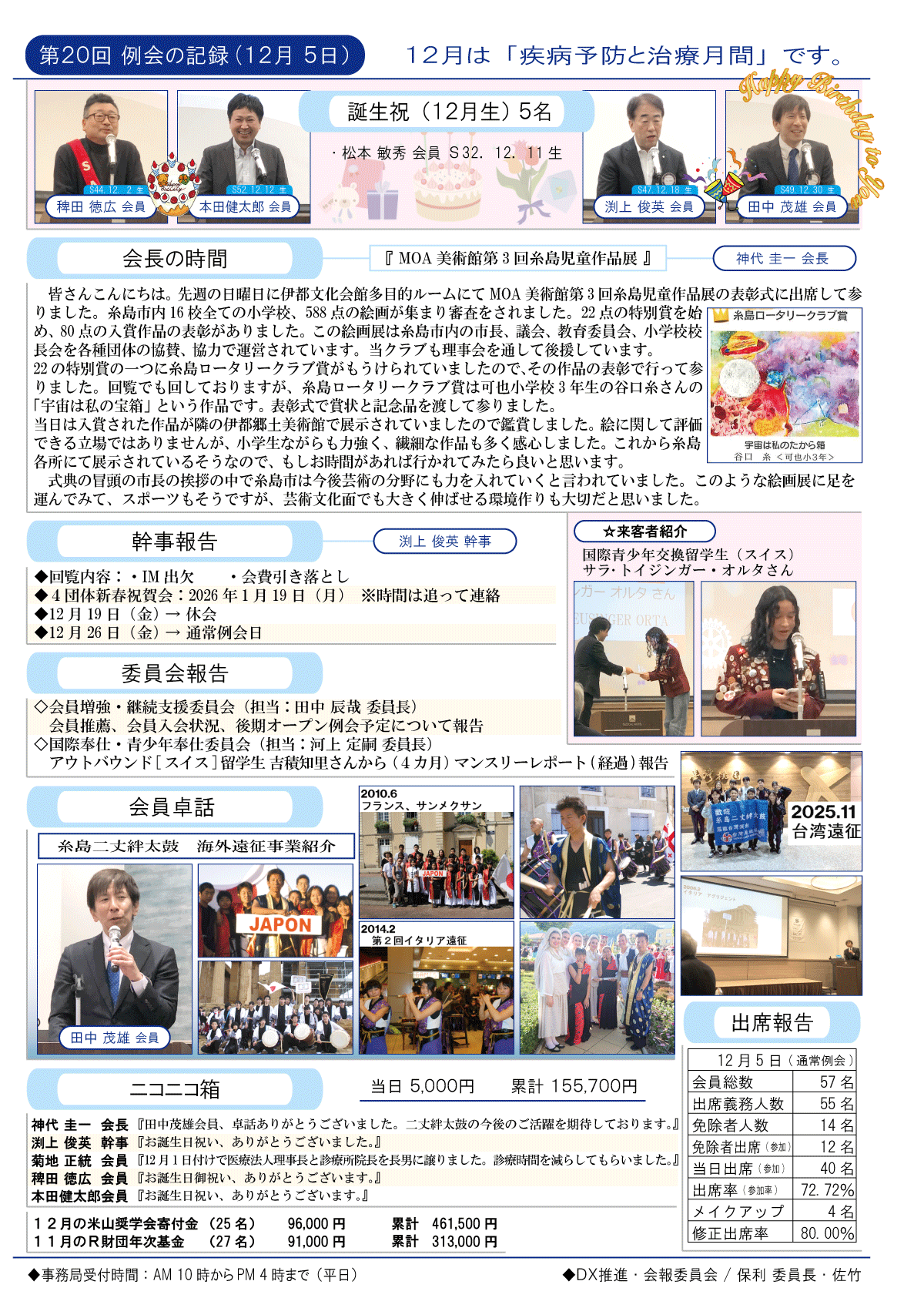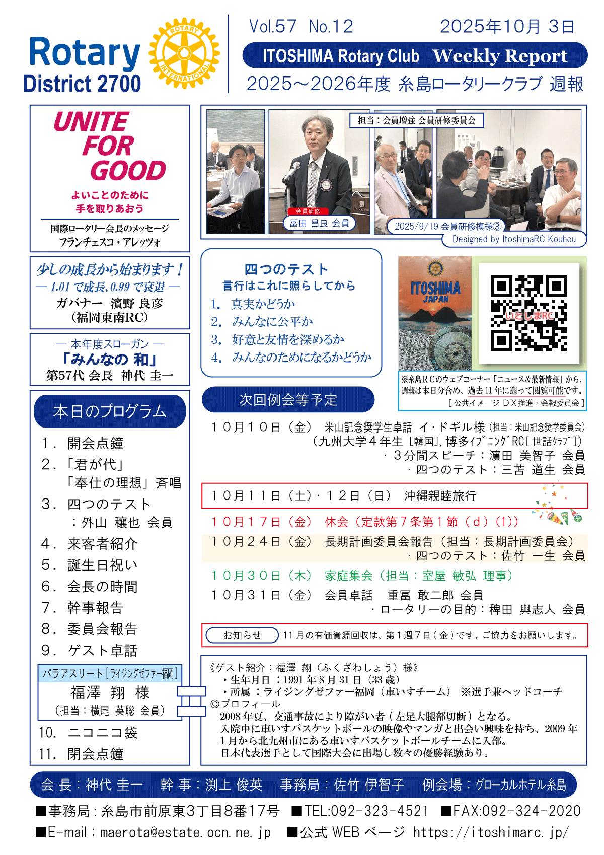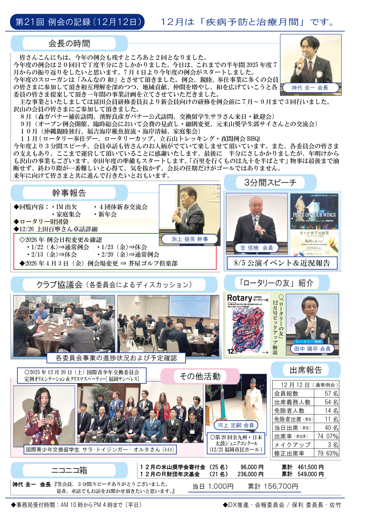 12日(金)週報(通常対面形式例会)