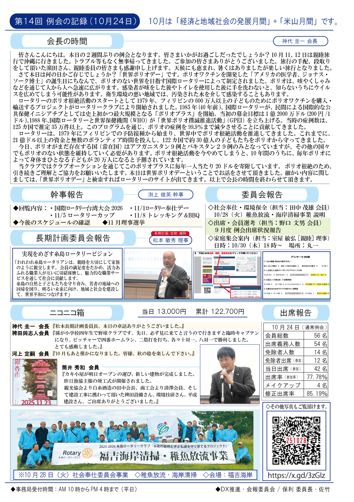 13日(木)ロータリー奉仕デー(糸島市会場)