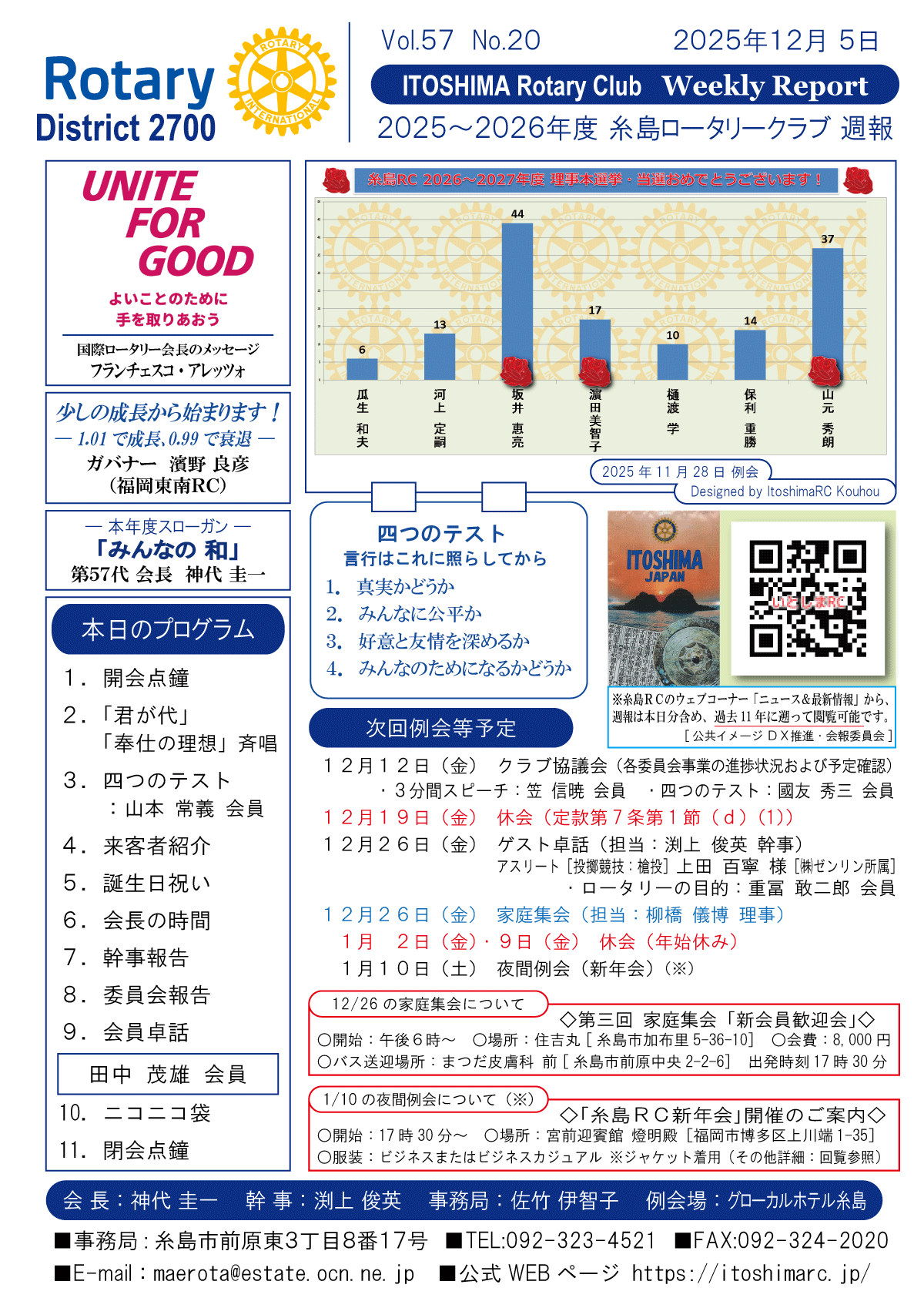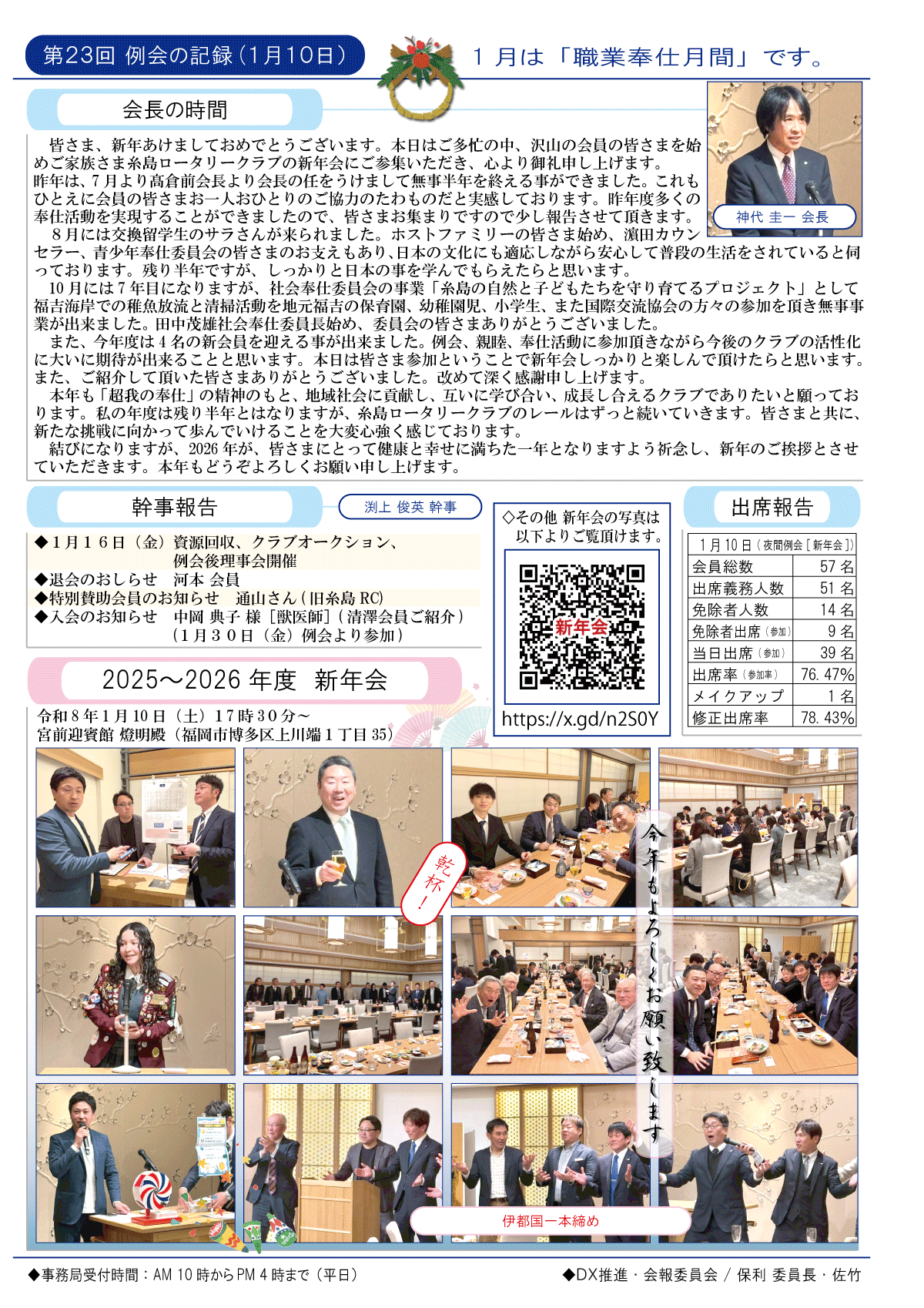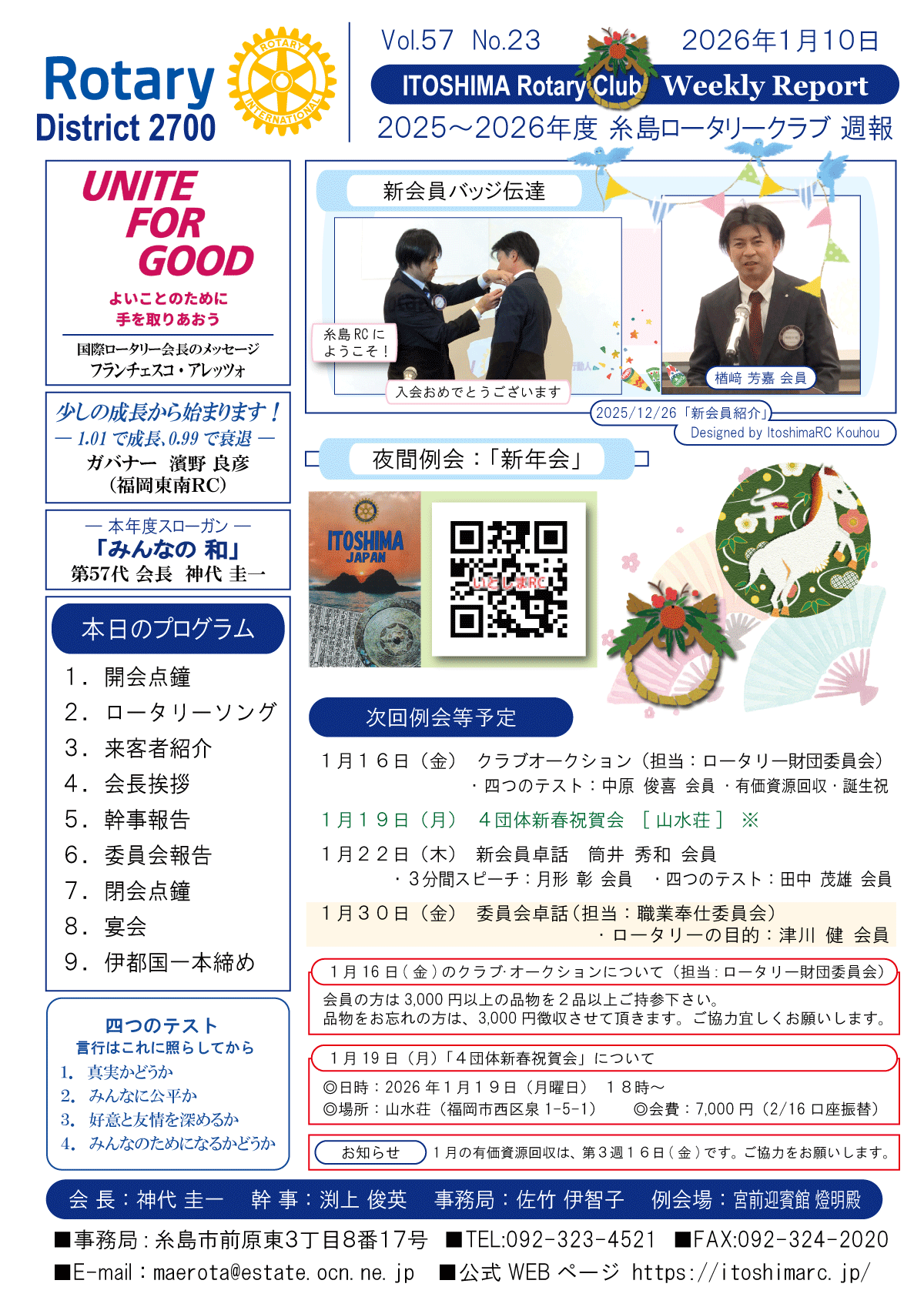 6日(土)週報(夜間例会・新年会)