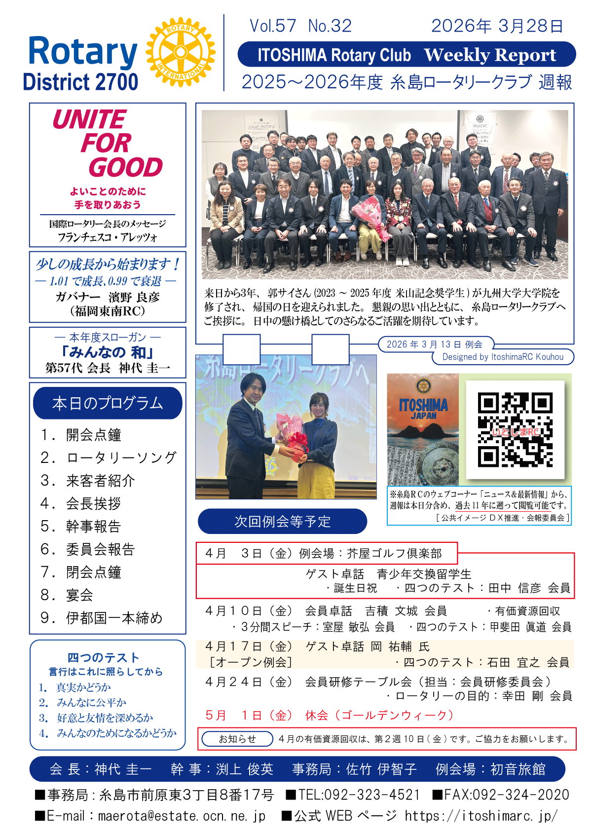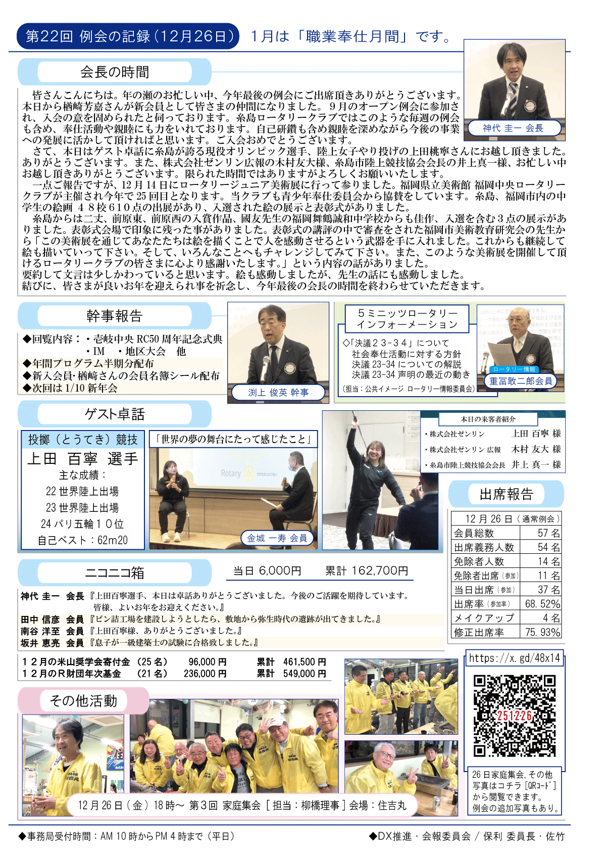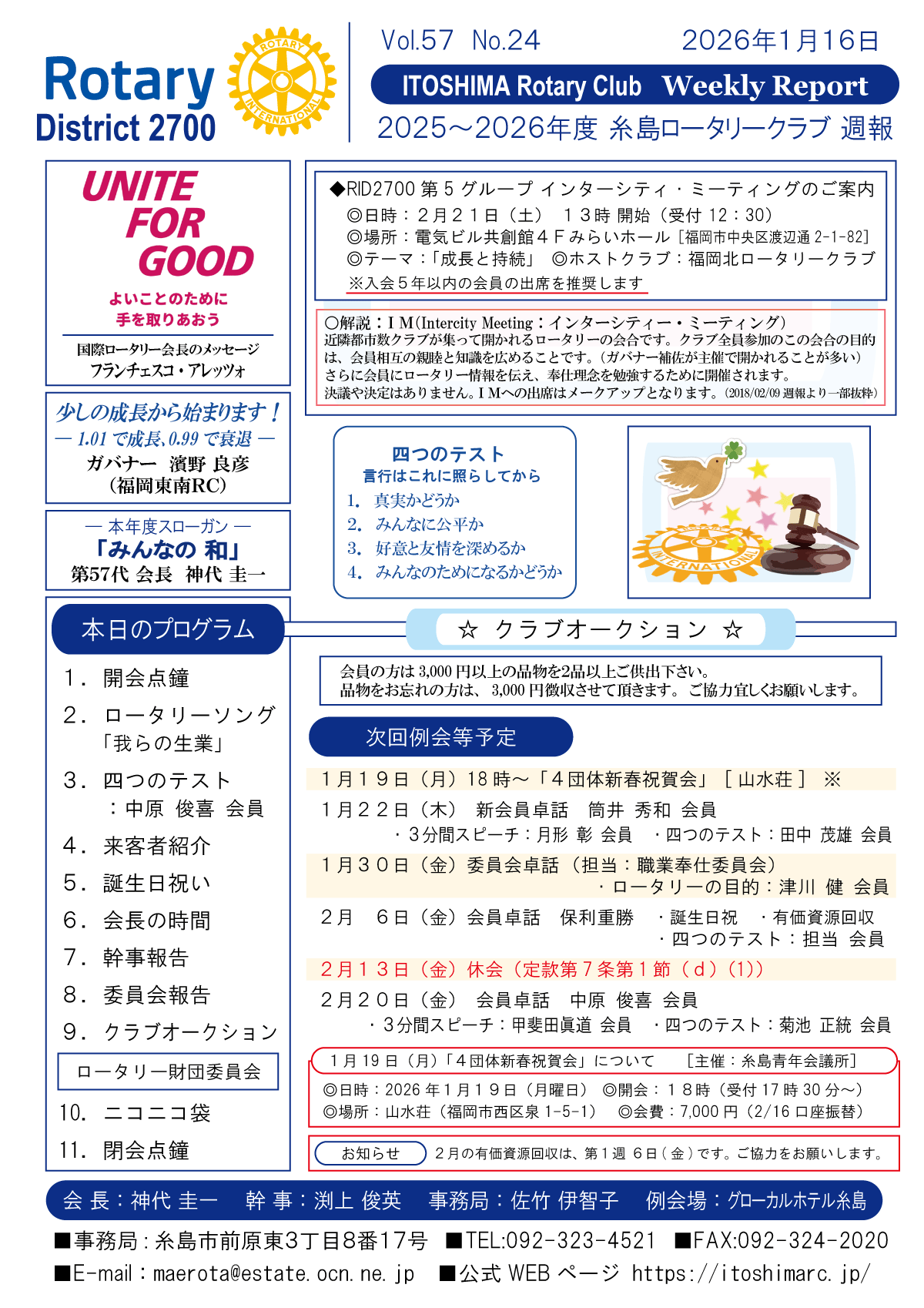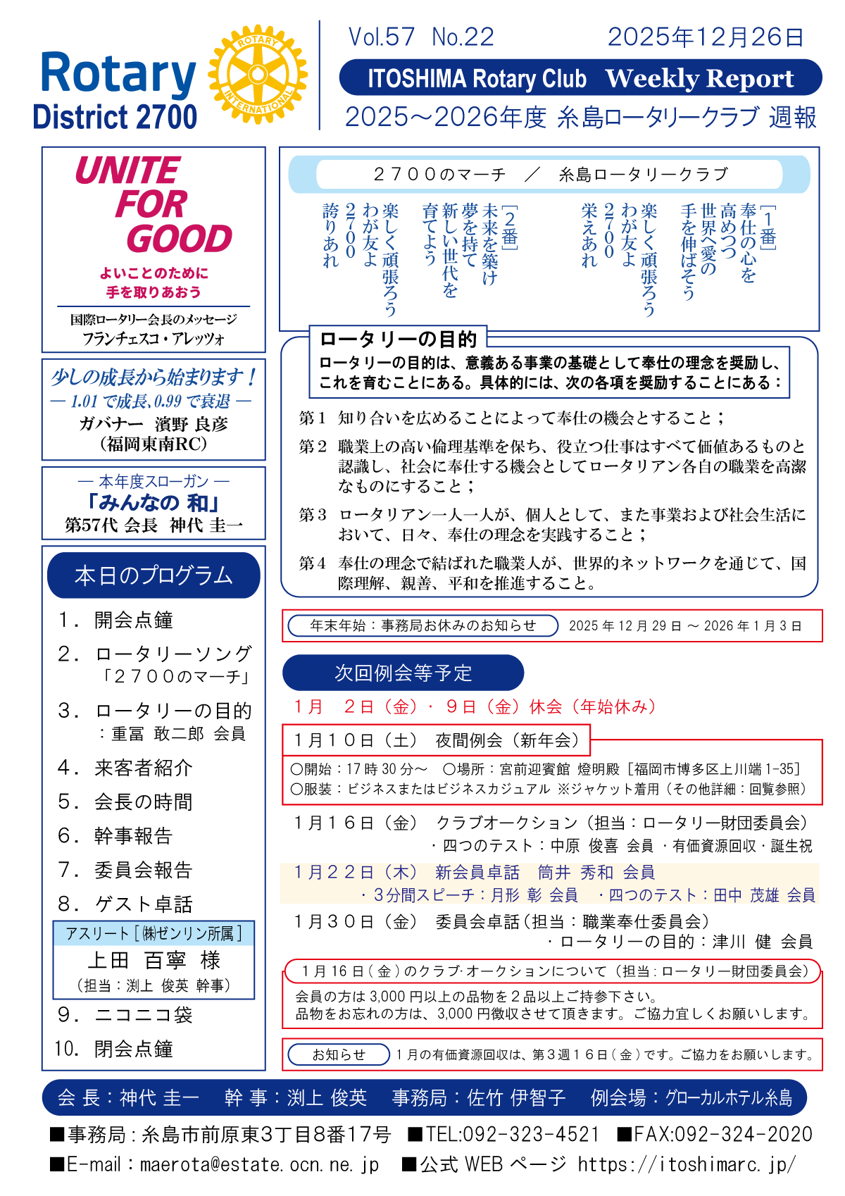 26日(金)週報(通常対面形式例会)