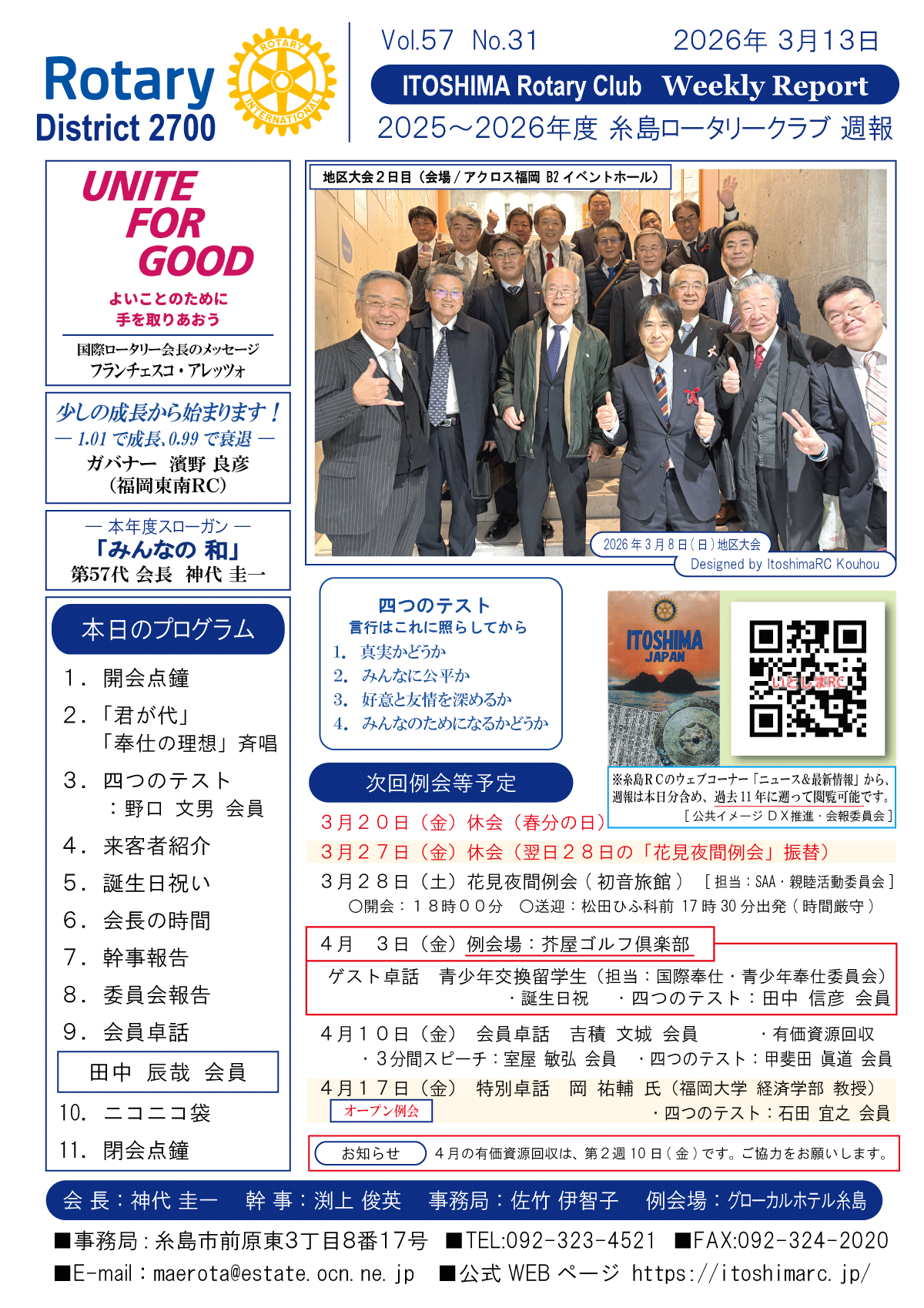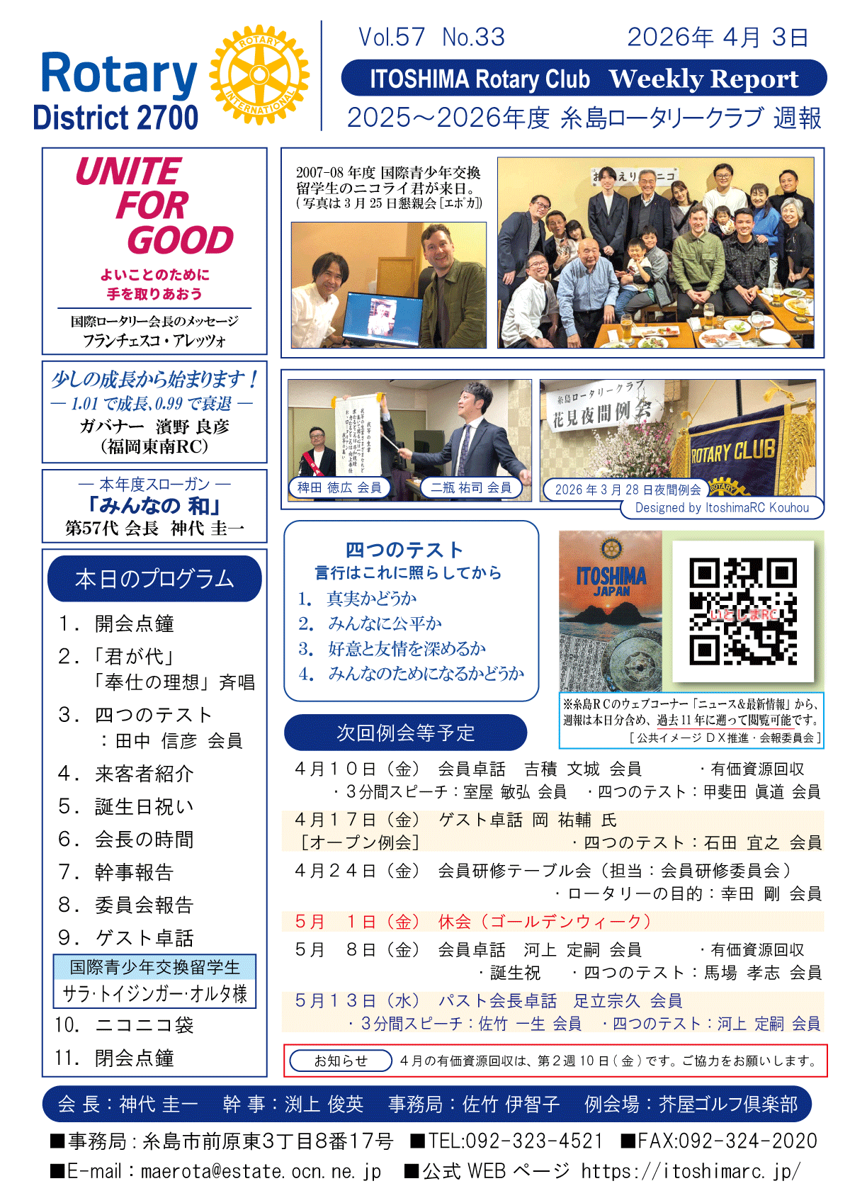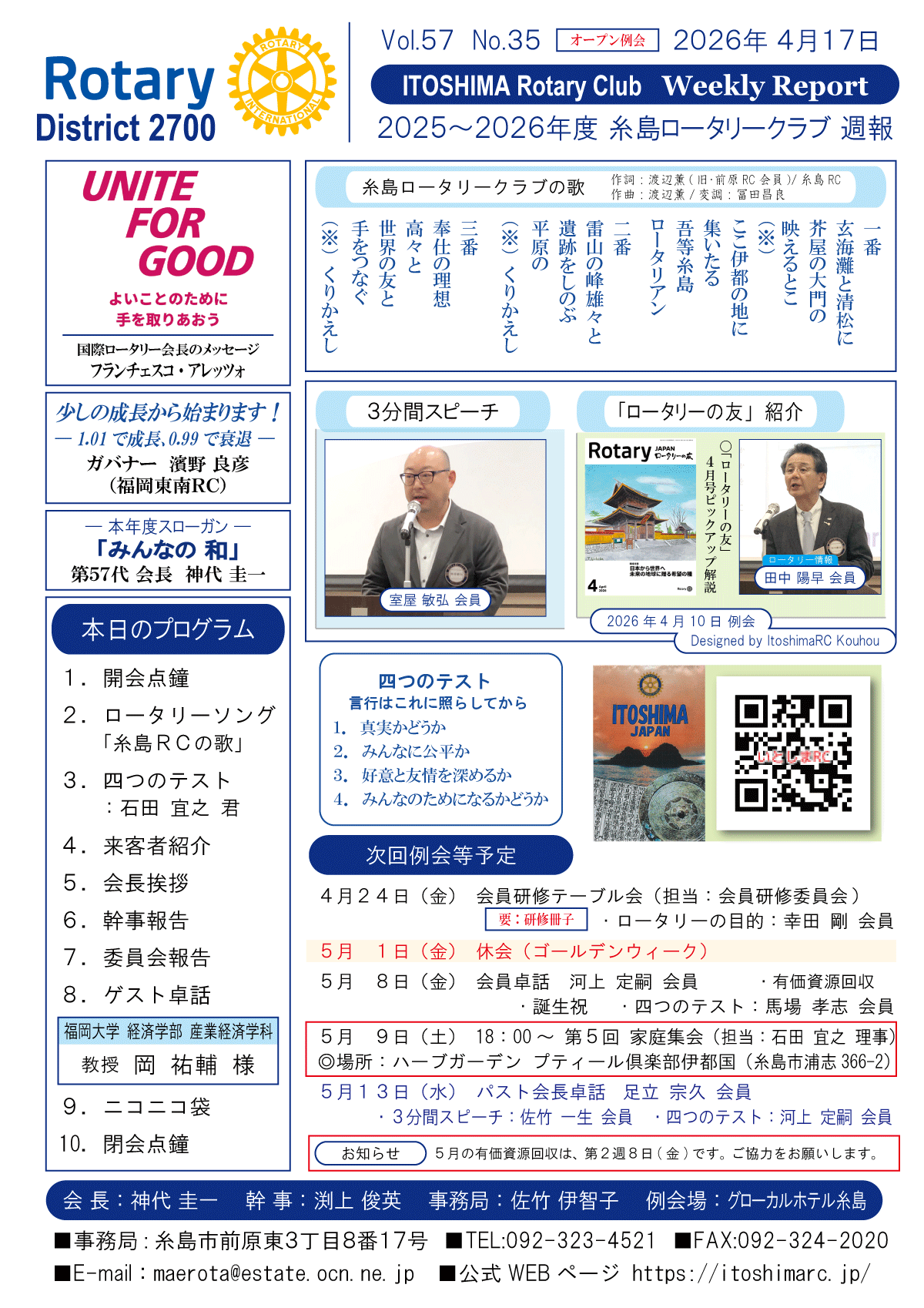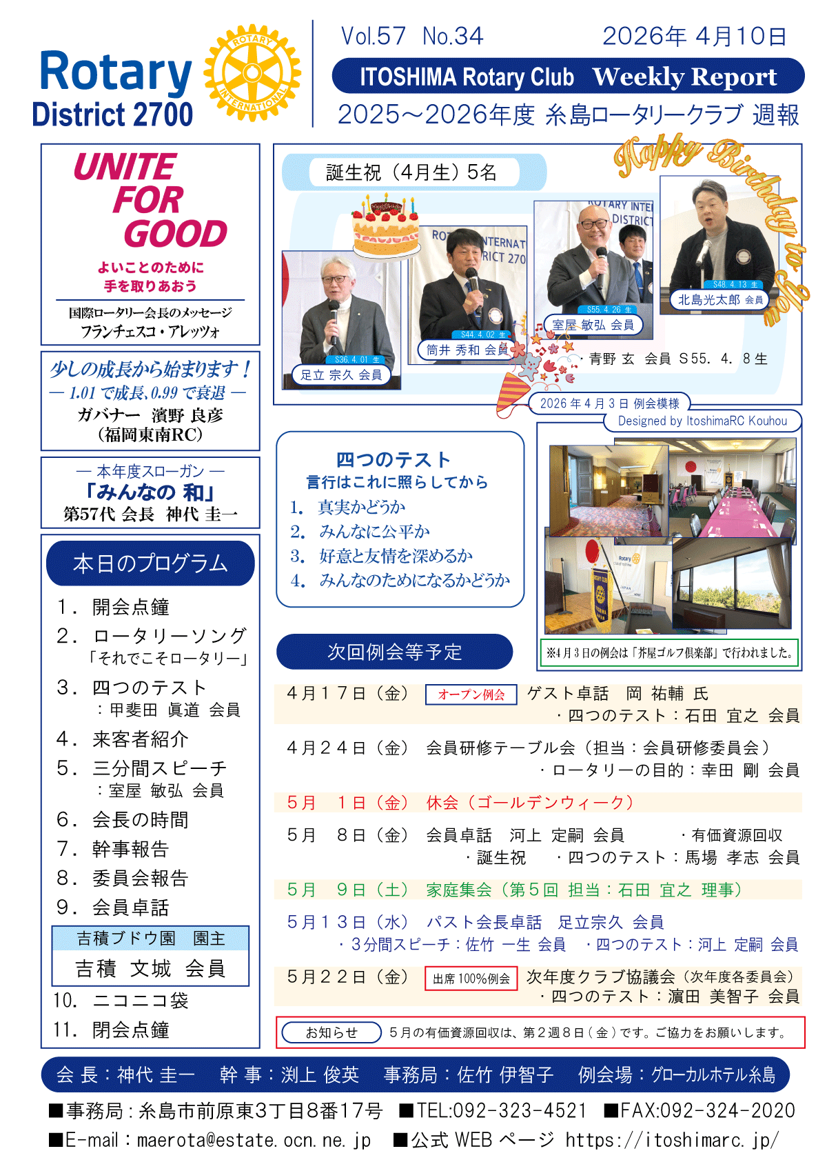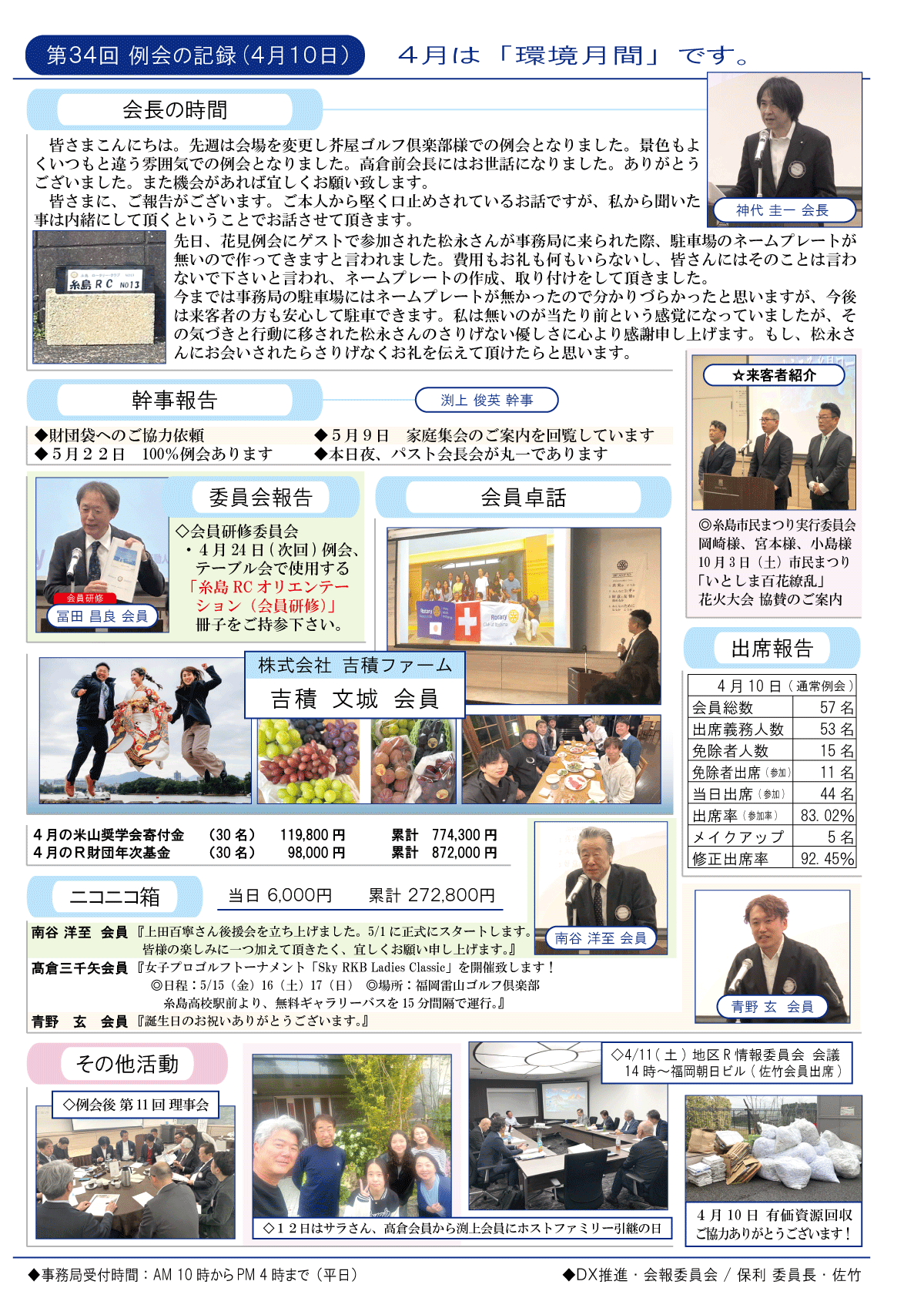 4日(金)週報(通常対面形式例会)
